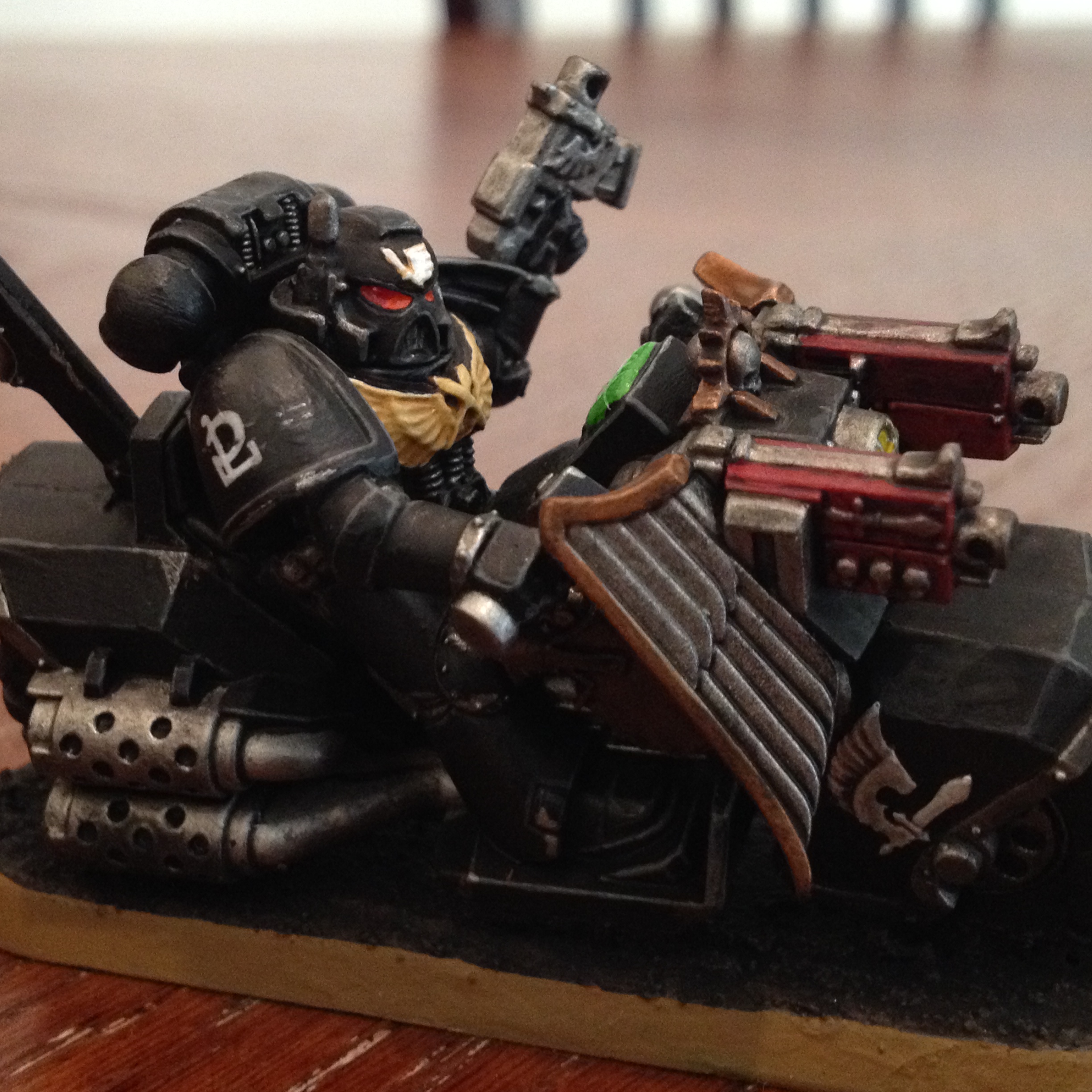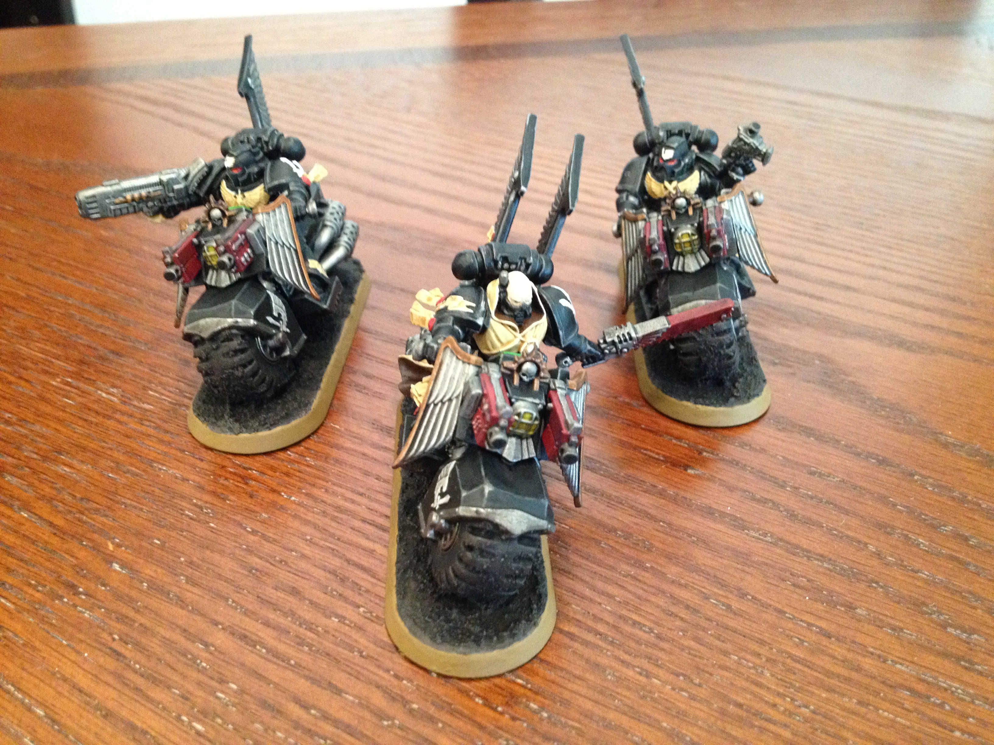 Very nice. I would just suggest painting the bases in different color. As the bikes, tires and powerarmour are all black, grey or brown color as the base color would be better imho. Otherwise, very good.