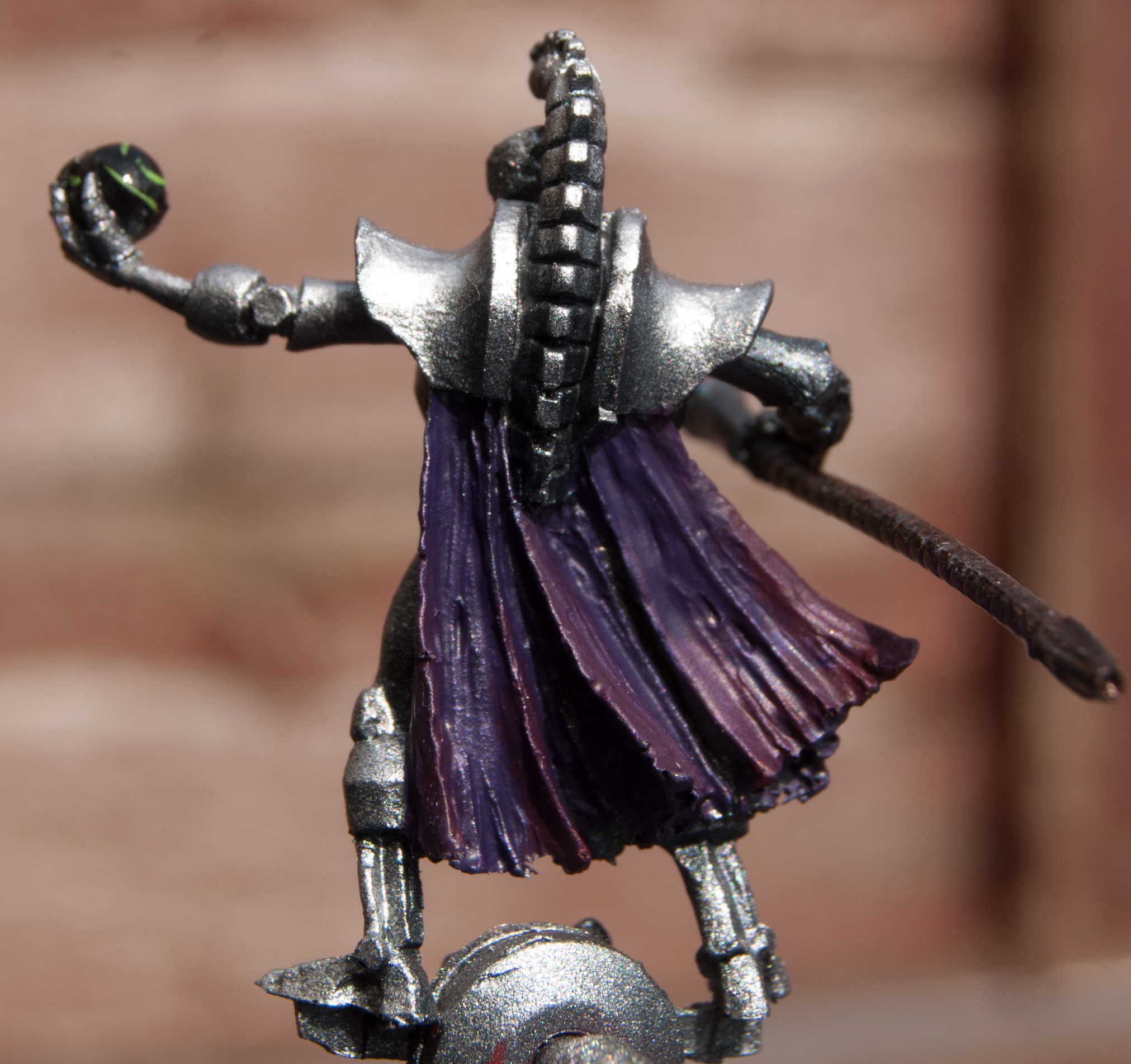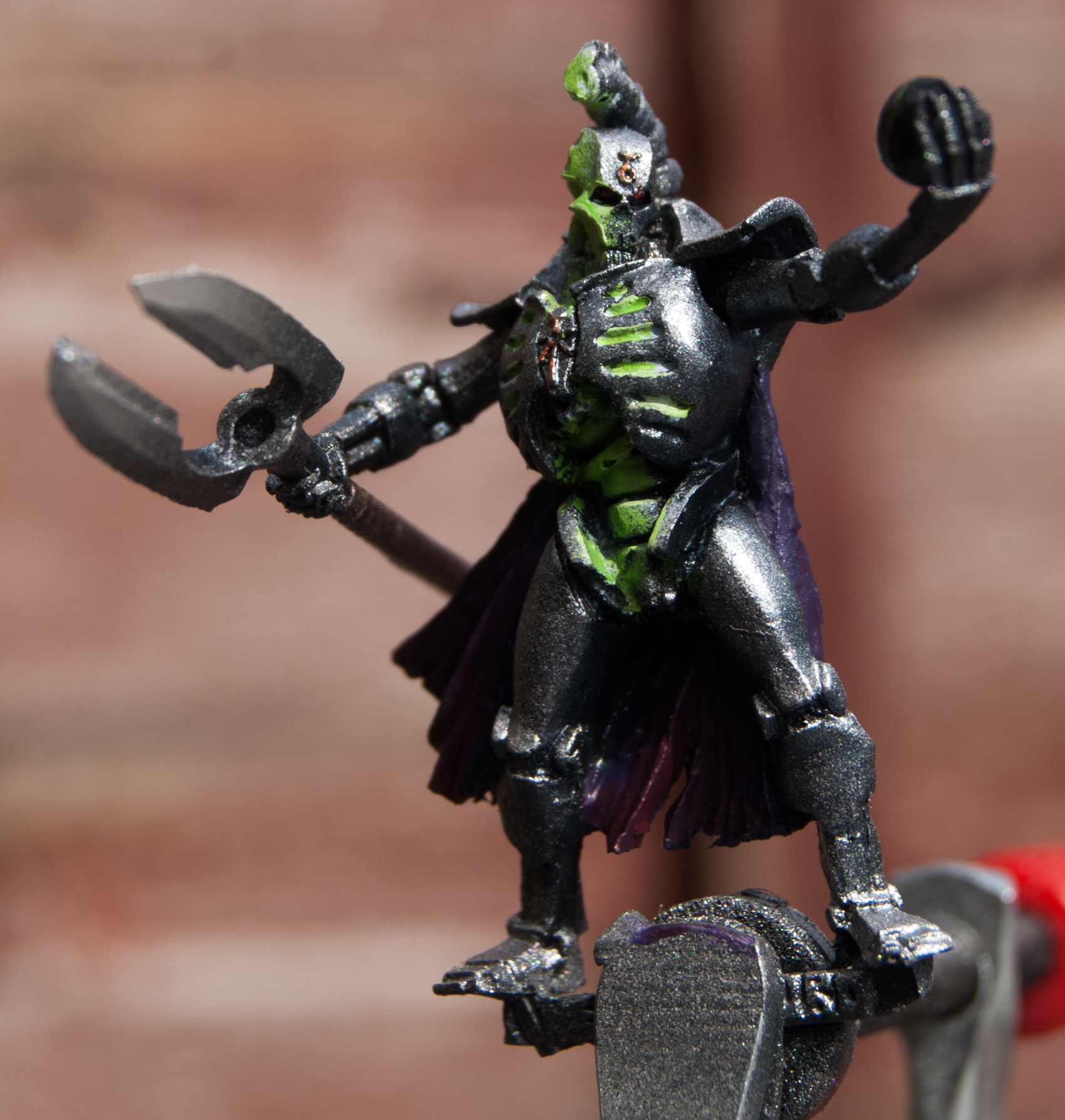NL with directional airbrushing with blackened Vallejo blue metallic underneath, the normal boltgun metal as the general paint and then highlighted with steel (if I remember!). I wanted directional PSL with hard edging on the model hence the green. Things to do include adding depth via oil wash and dealing with the stomach area wires for the PSL effect!