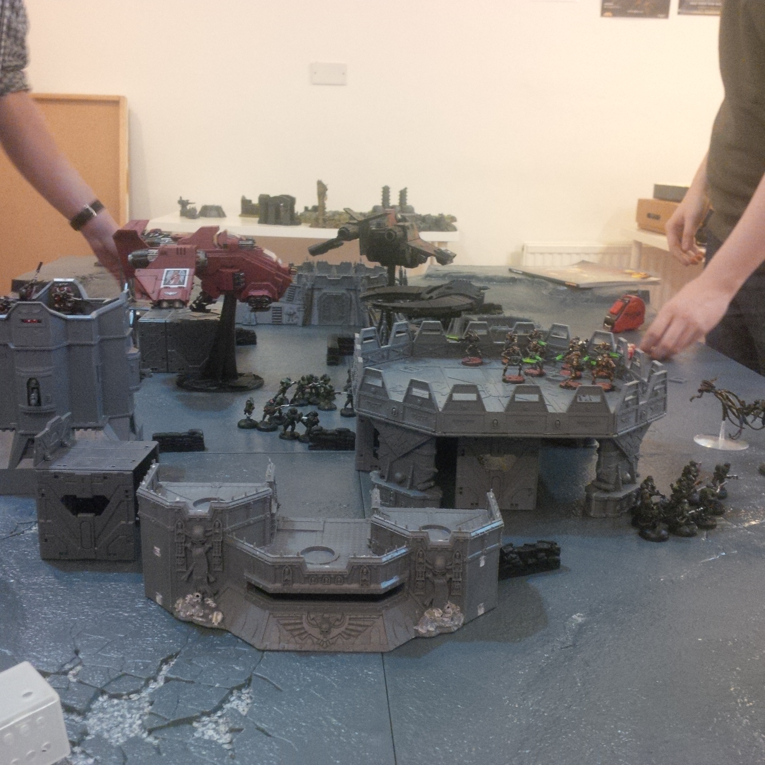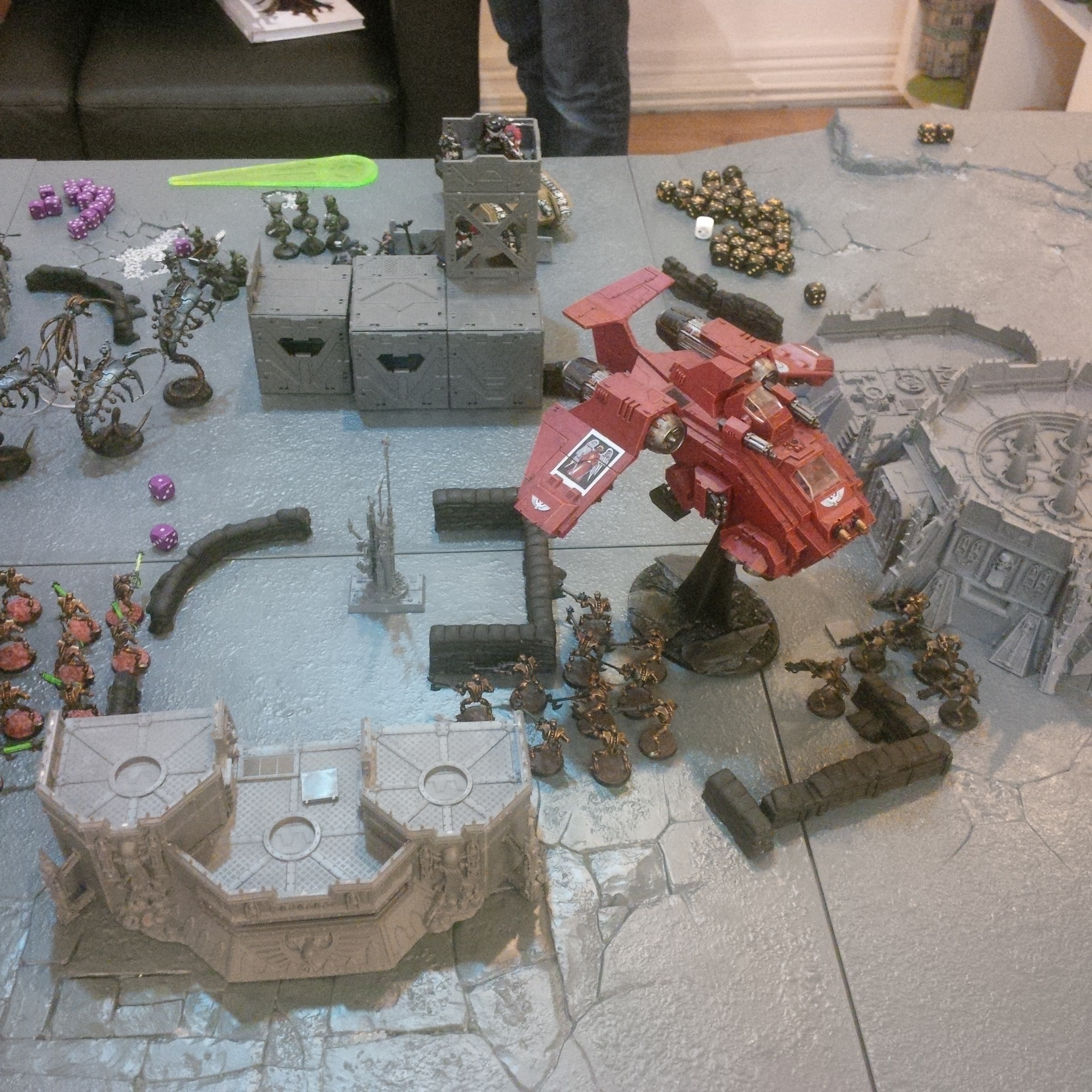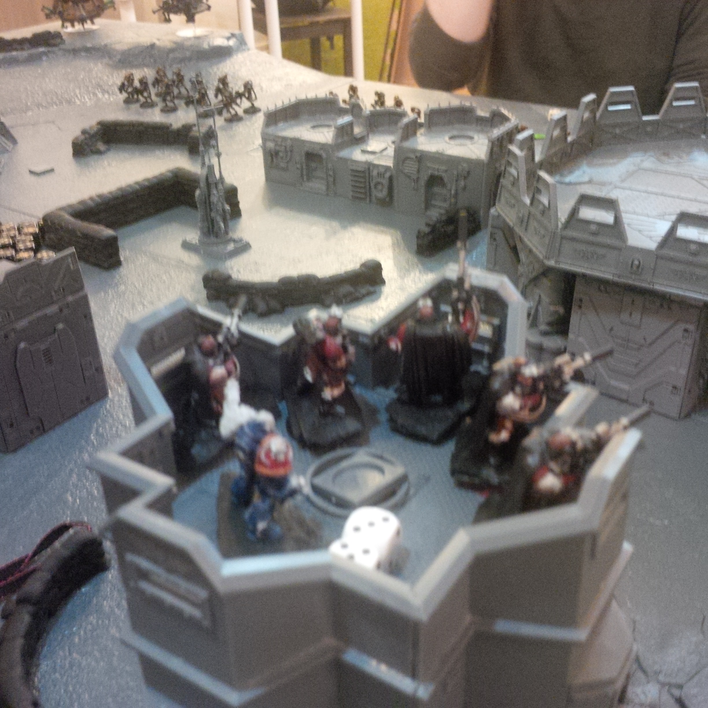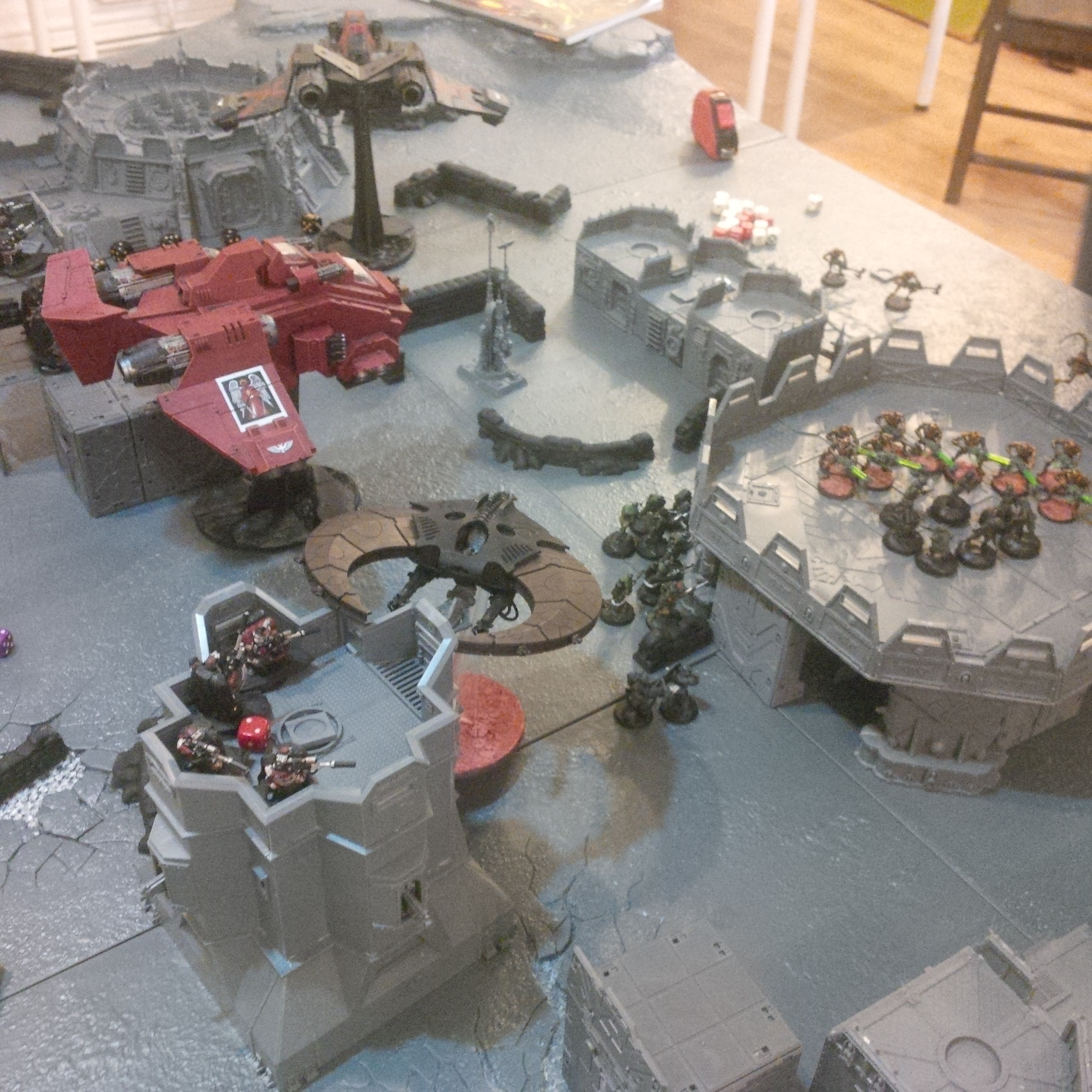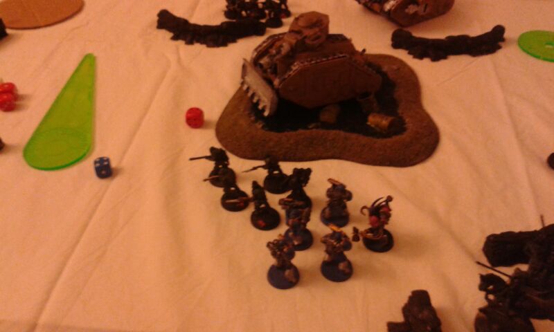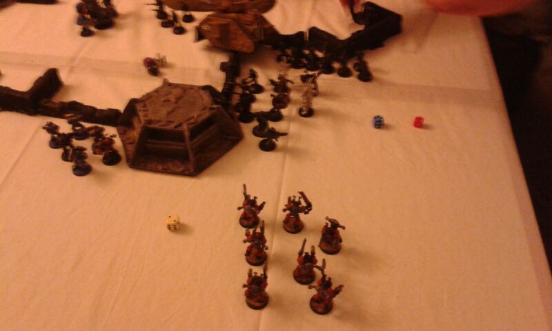 That's roughly it. Fighting a army consisting of waves of cultists led by a dark apostle, a vindicator, a raptor squad, a dinobot (the one with the melta cutters) on the board! Off board was a large termie squad, a oblit squad, a raptor squad and 2x8 beserkers in dreadclawS.