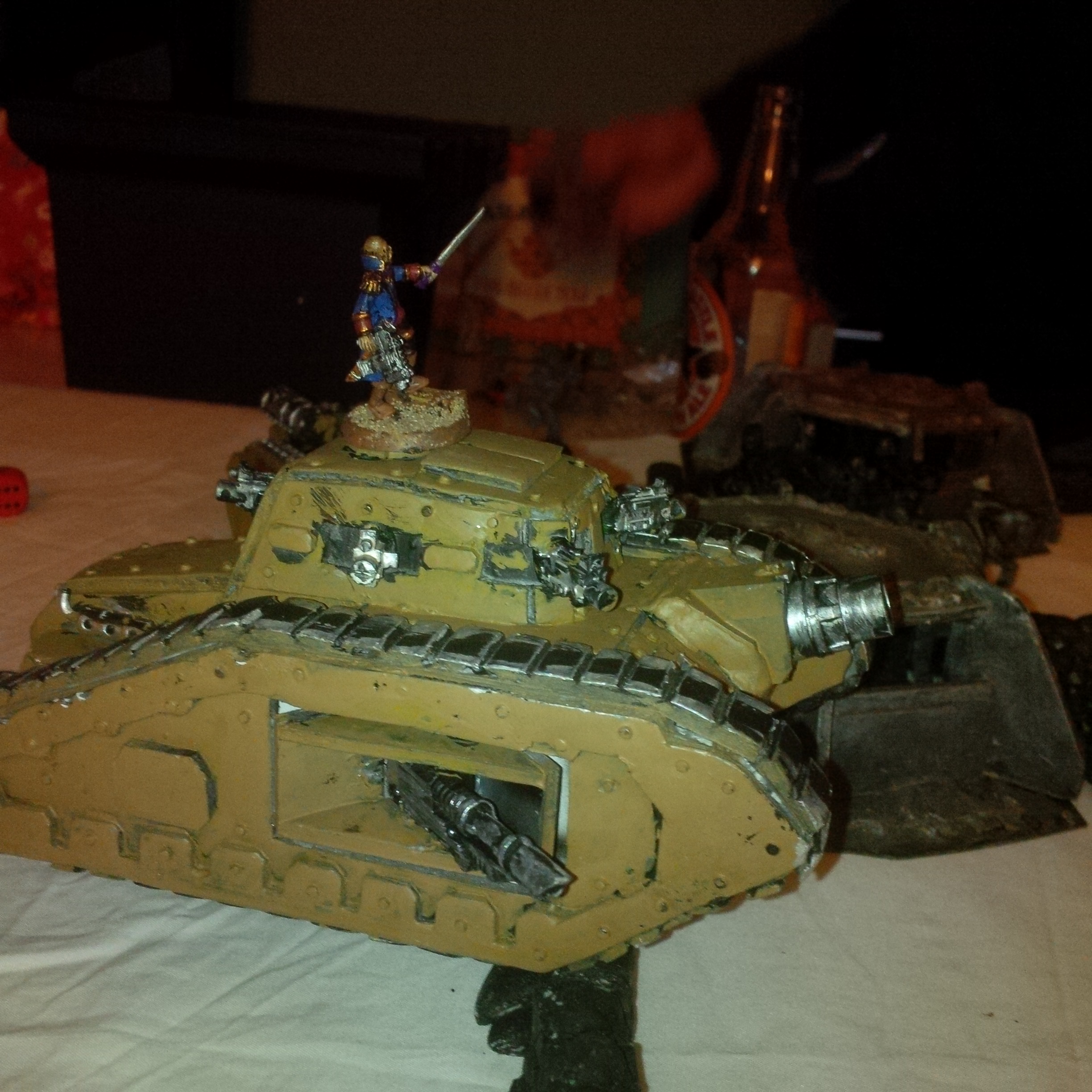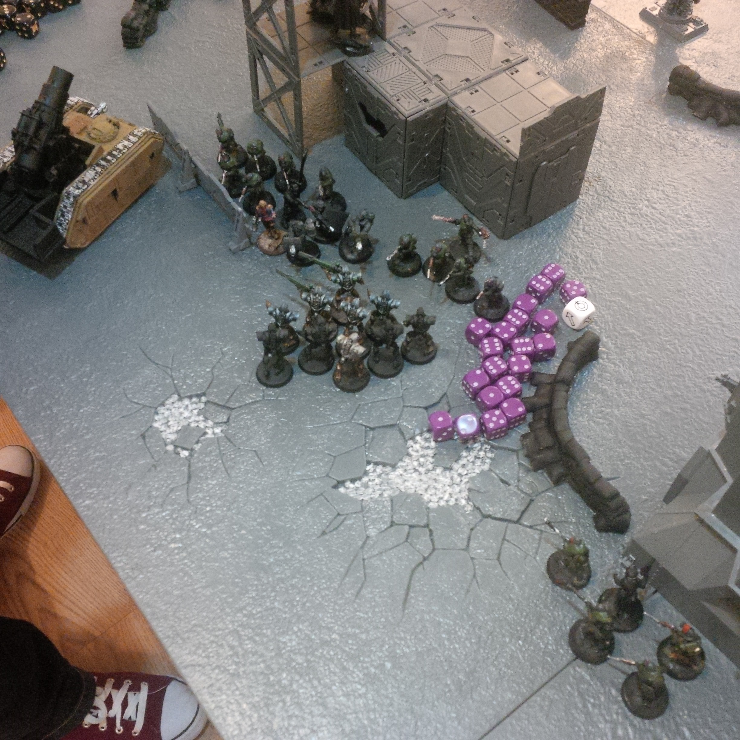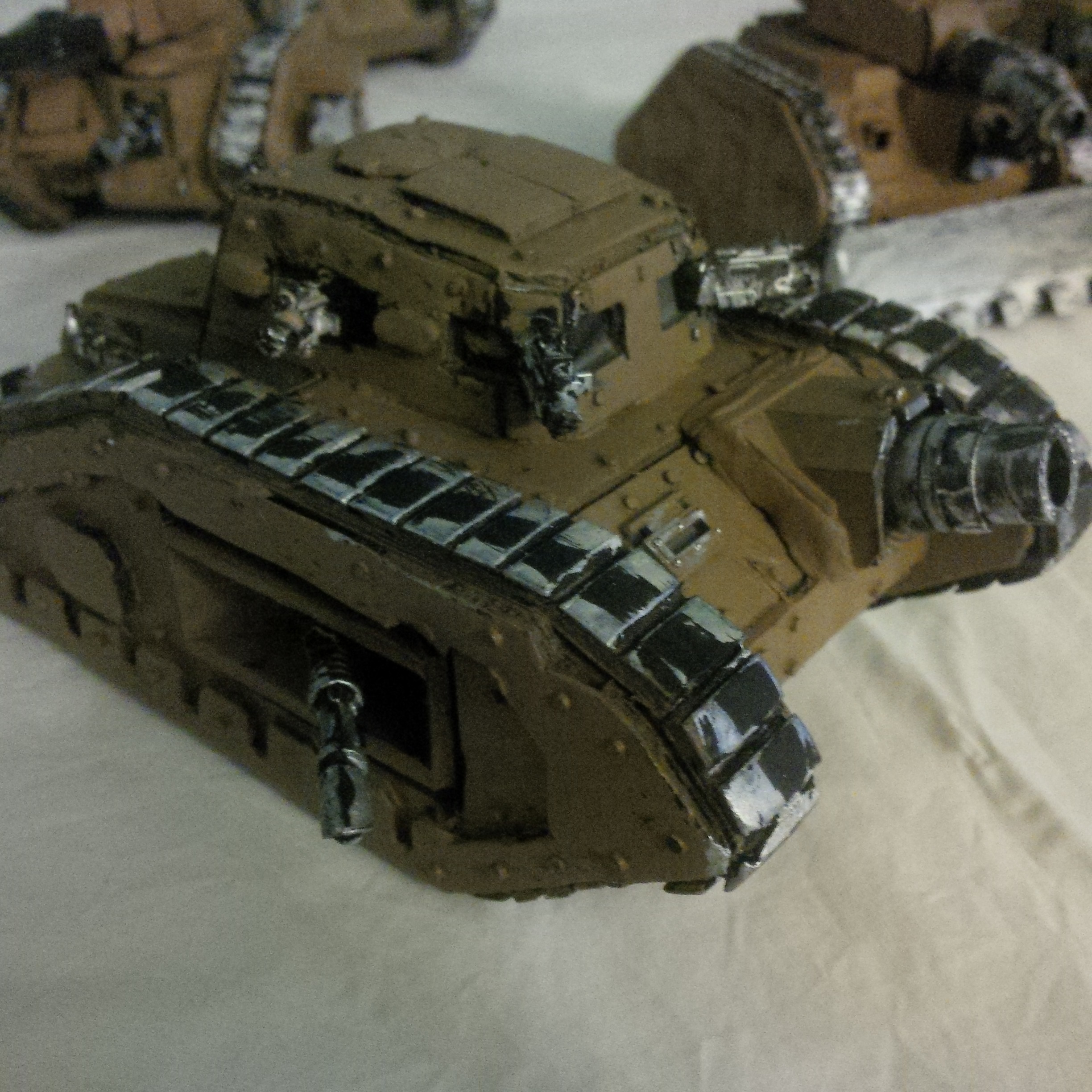 The exterminator to his right threw it's track. To his left a leman russ sustained a shot from a vindicator bearing blasphemous runes that emerged from the chemical haze. His own ancient vehicle rocked under lascannon shot but it's blessed hull withstood the blasts, it's gunner shaken.