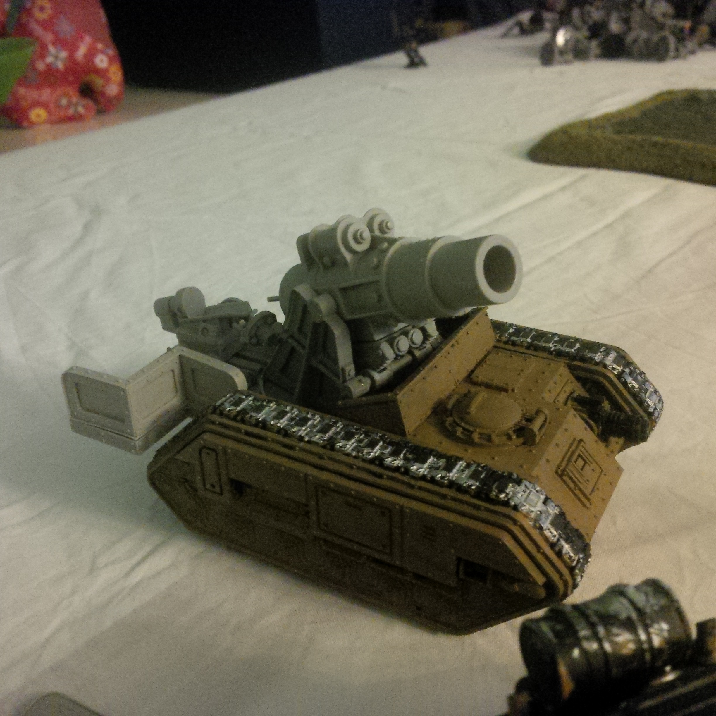 A roar took his attention away from the vicious melee erupting below his tank...from the mist staggered a large creature, mechanised yet biological. Four limbs supported an elongated head, topped by a daemonic visage. Its massive arms carried potent melta cutters. By the throne it moved Fast! he knew enough of the Vraks campaign to spot the sorcery of the arch enemy and realised that he would need to concentrate his firepower on the target.