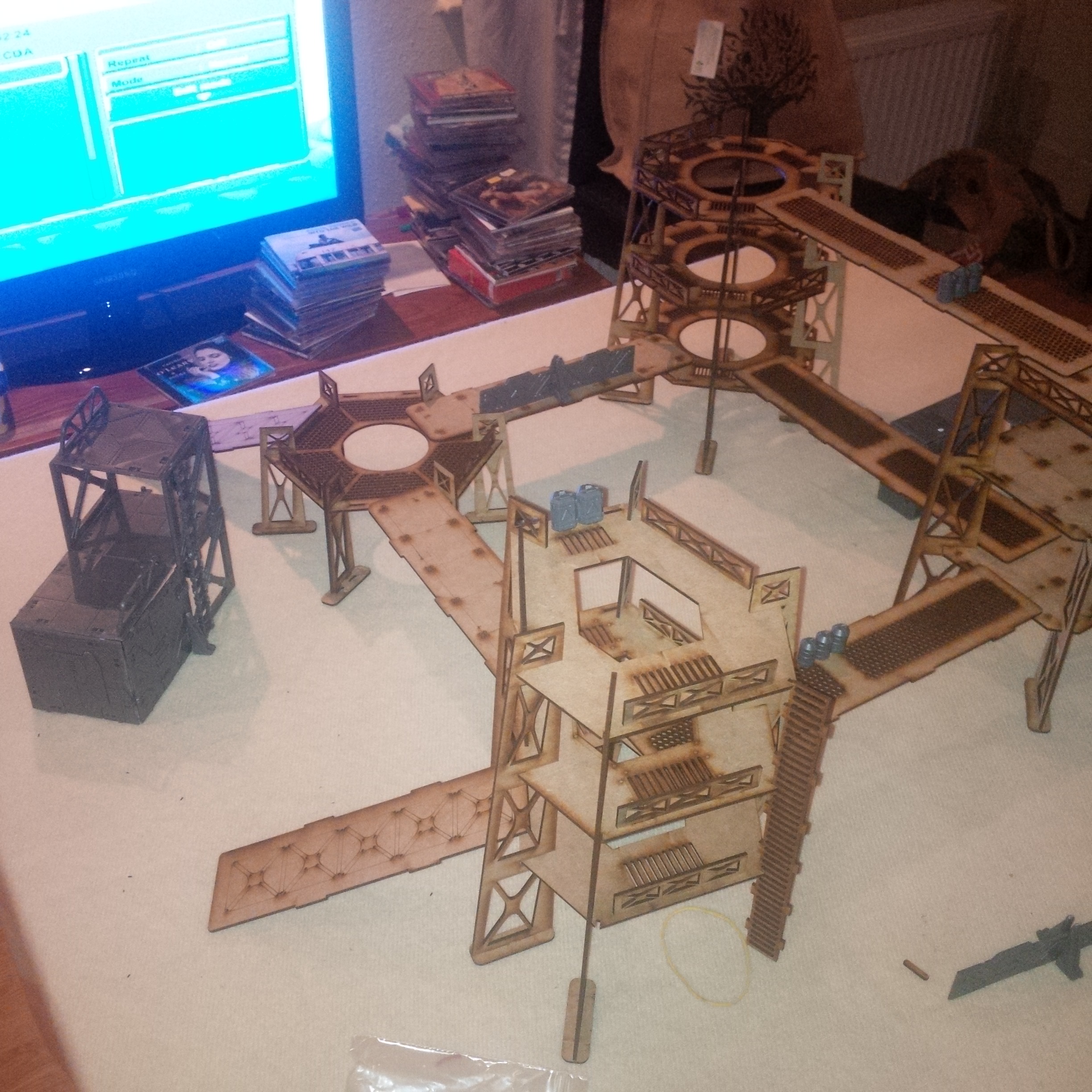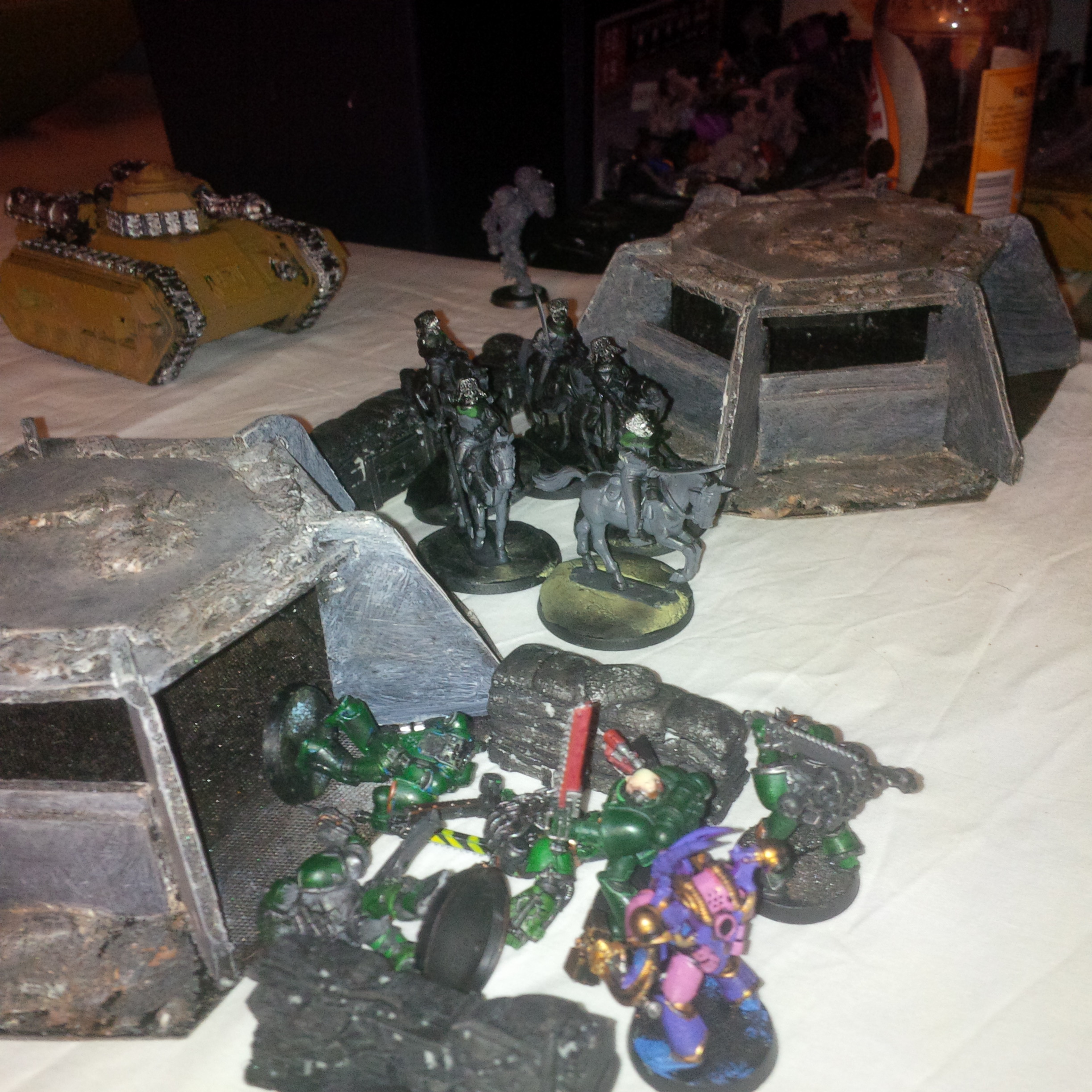 Those bunkers look lovely. Props to your friend for building them. Now hit the shop, get some sand spray paint and a sand colored cloth and voila! Cool battlefield in 5 minutes.
