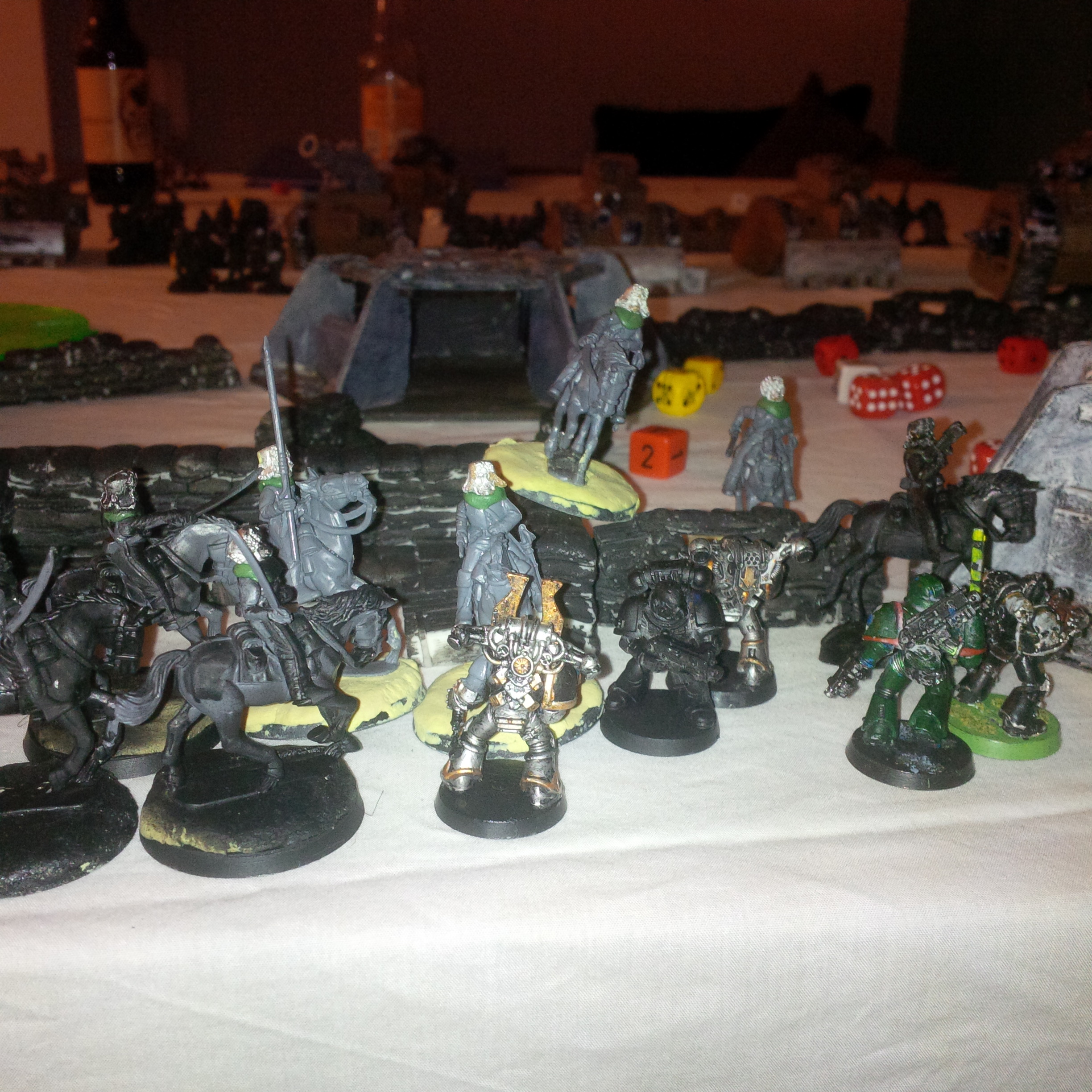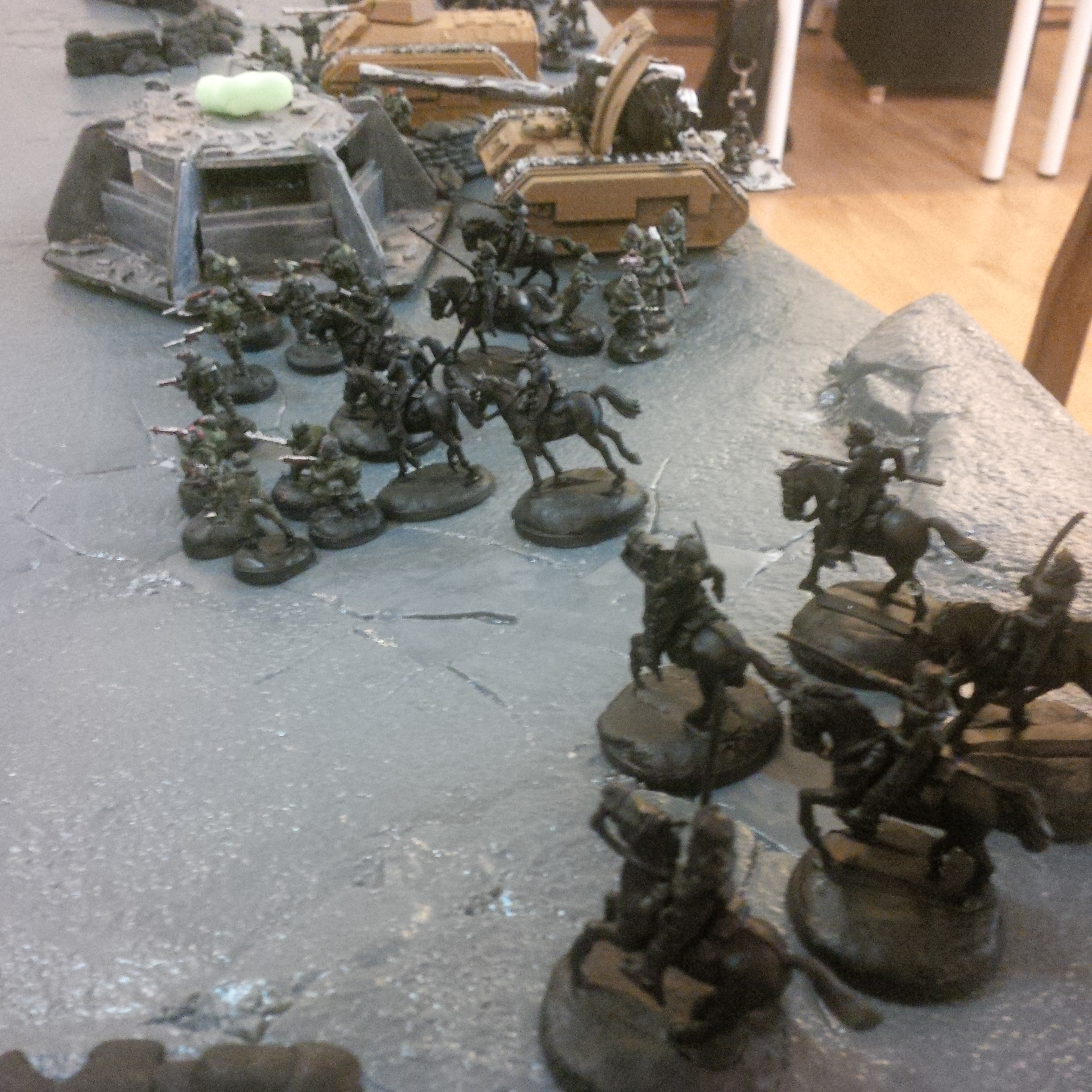 Will write a narrative and standard style battle report. Here are some pics of our holiday game with whatever is to hand.