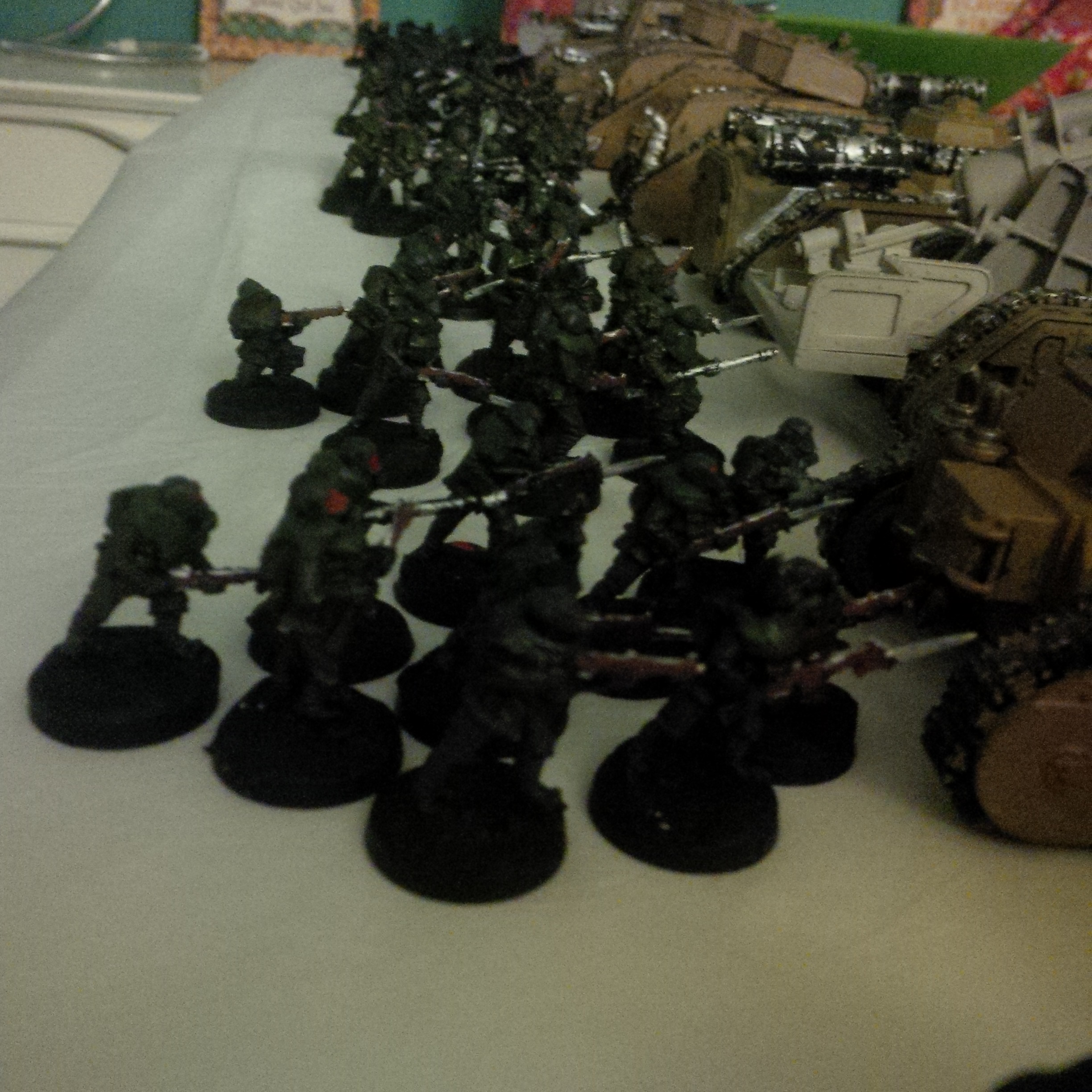50clicks away a body of men had gathered. Trained trench raiders moved into position, steadying their weapons. Five leman russes with a mixture of battlecannon, plasma and autocannon warmed their engines. They began to roll forward, gaining momentum.