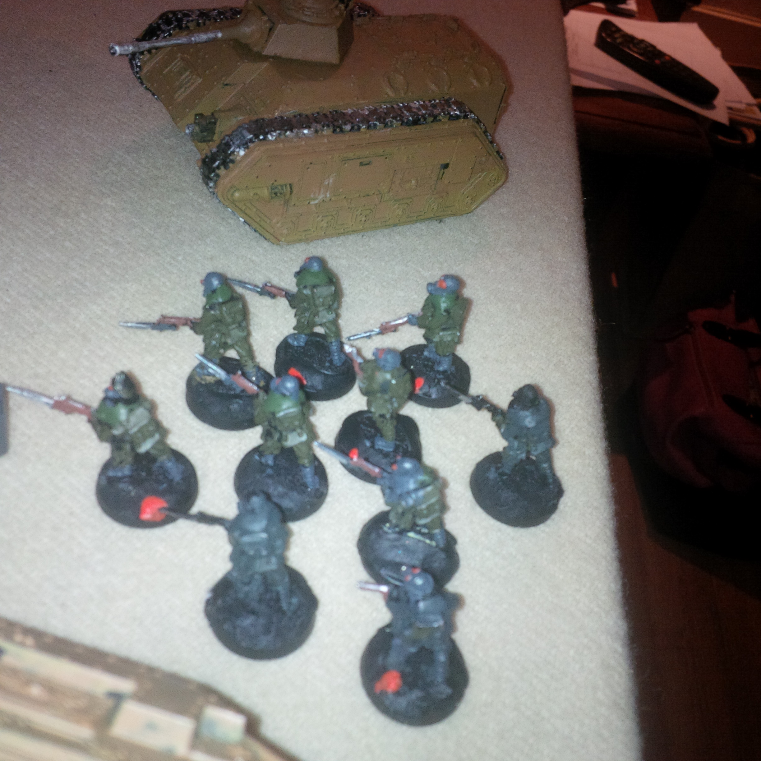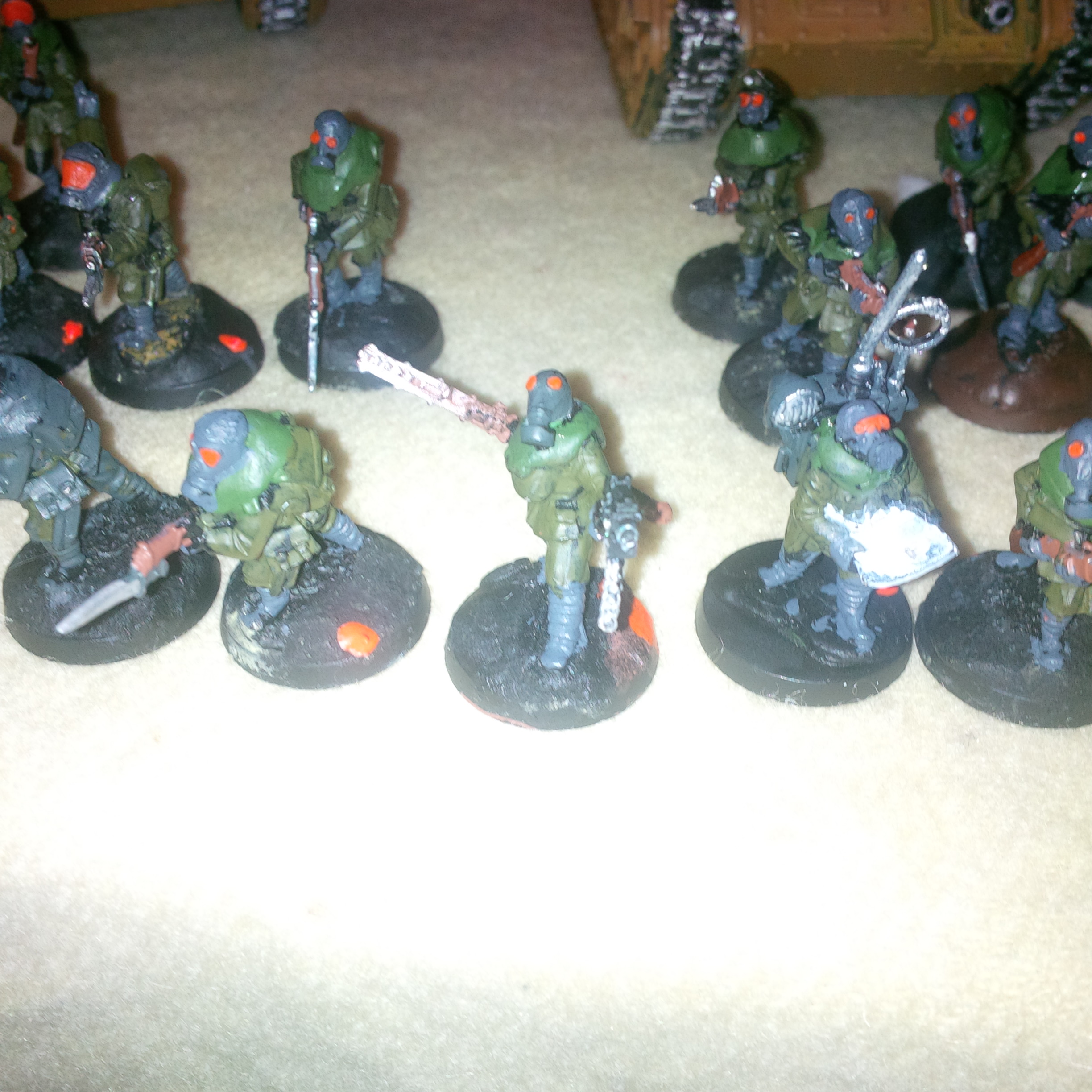 Troops: 2 platoons of 1pcsX2 flamers, meltabombs 3xinfantry squads x3 flamers, meltabombs