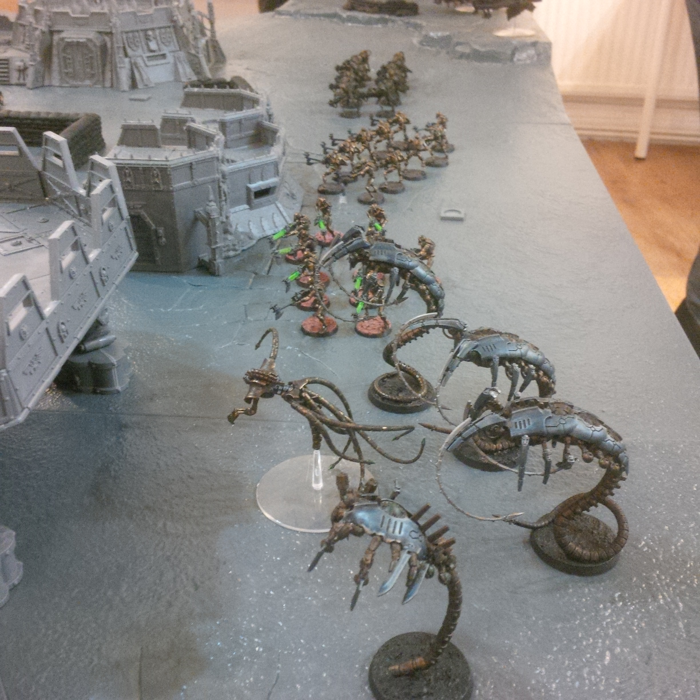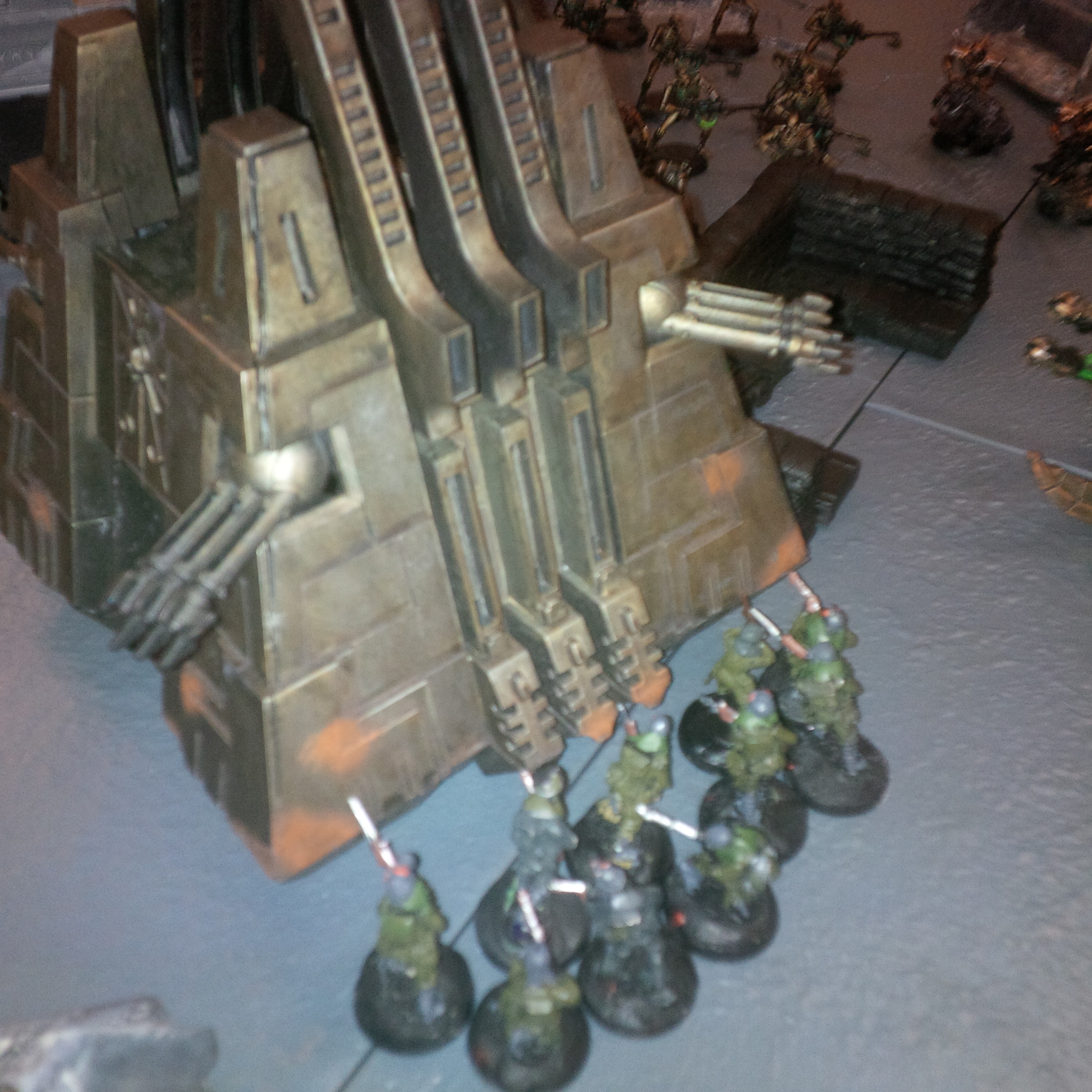 Using my time honoured tactic of 'look how hard medusae are! St10! Large blast! Ignore my waves of meltabomb carrying guardsmen' I was able to literally expend over 200 guardsmen on suicidal frontal attacks. What did comrade stalin say? Quantity has a quality all of its own. Lone guardsmen accounted for almost all of the necron vehicles and elite with the massive maynark warrior phalanxs being ground down by sustained heavy mortar and basilisk fire.