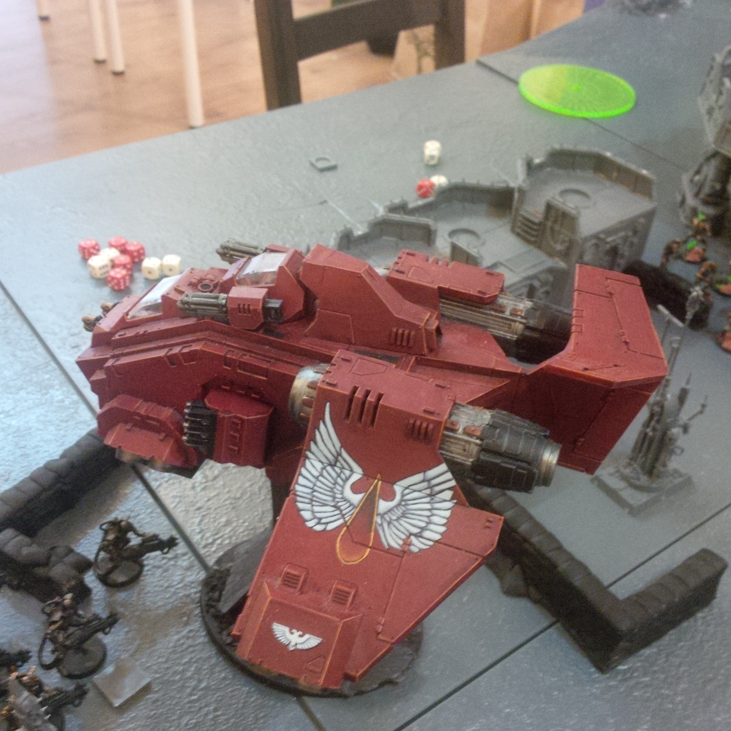 The Astartes needed terrible wounds to bring down and each time a tank fired, guardsmen got caught up in the blast. Missing limbs and shattered the red forms still brought down guardsmen, some even removing their helmets and using their ferocious jaws to rend. The firepower barely dented the screaming skull taking hordes and despite their ragged appearance and dented power armour they soaked up the shot. It was then his eyes were drawn front.