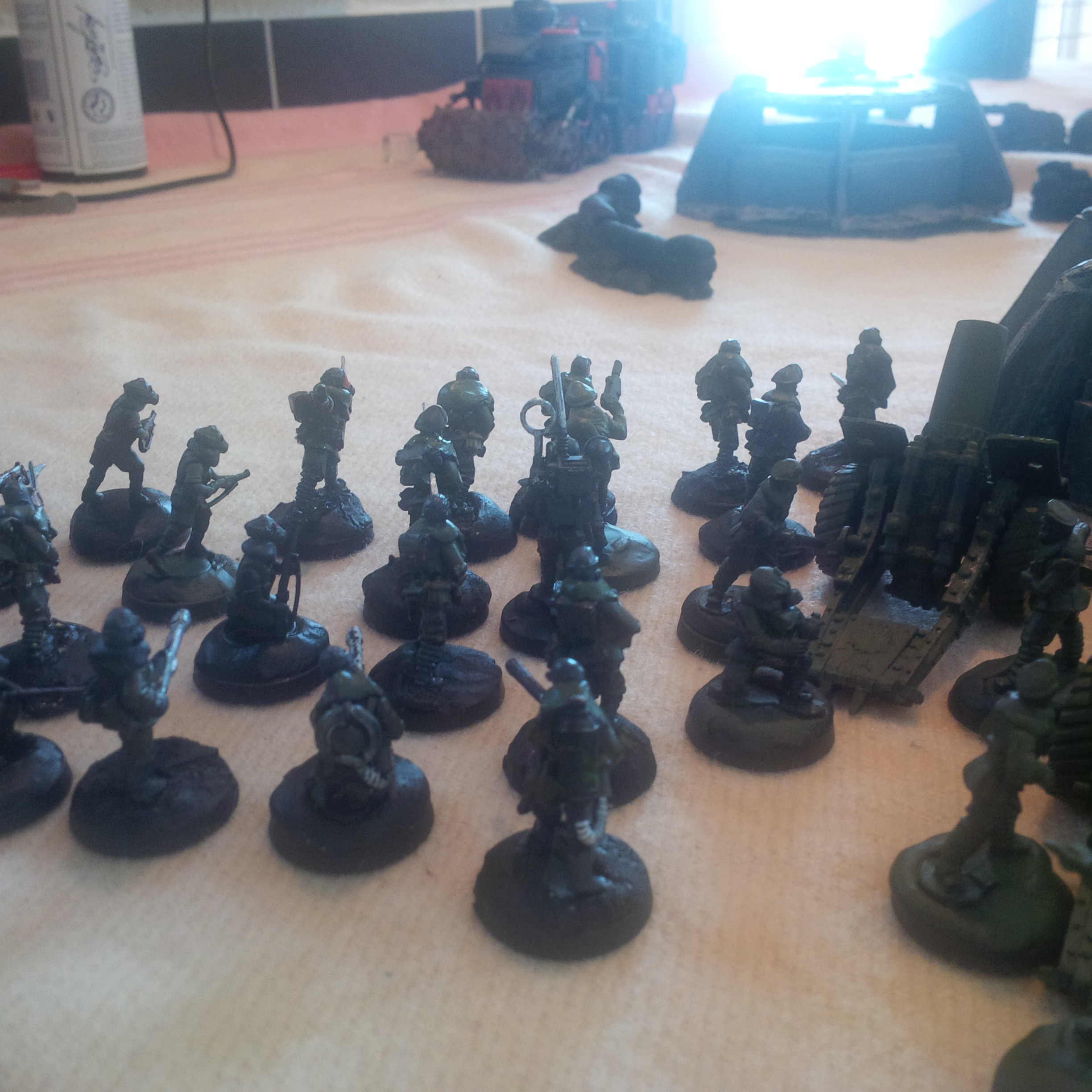 Within minutes his forces had passed down into the trench lines moving sideways whilst under smoke barrage to their right, protecting their sides from the enemy. The trenches were curiously empty. Within minutes his patrols were reporting lasguns and rebreathers stacked in the trenches and the remnants of biological matter. His mind raced. What bioweapon could dissolve whole squads of chem-reinforced guardsmen?