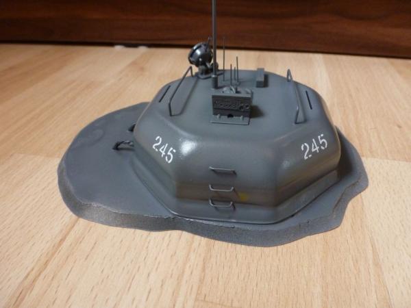 Meanwhile I started painting the radio station in some shades of grey and applied the first decals to provide more detail.