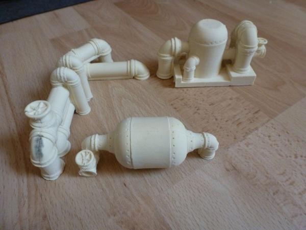 I also started to clean the parts I want to use for a pumping station / water supply system. Unfortunately they feature an immense mismatch in mold which will take me some time to correct / hide.