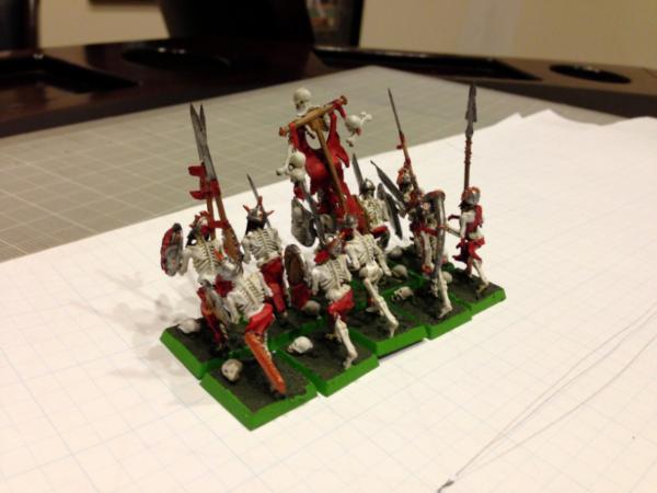 So here I am. I figured I would start up this blog for a couple reasons. I’m brand new to the community and back into painting after a long hiatus so I’m looking for feedback and advice. Having browsed the forums there is obviously an abundance of ability and knowledge so if anyone has any feedback, suggestions, or spears definitely let me know. I’m always trying to improve as a painter and am eager to hear your feedback. Eventually, when I get my army built and painted and I start playing games I’ll start posting battle reports. Expect me to update at least once a week and I’ll be posting stuff I’m working on or stuff I’ve finished along with any thoughts or ideas behind the army or model. But for now, I’ll start with my brother’s skeletons. Enjoy, and let me know what you think!