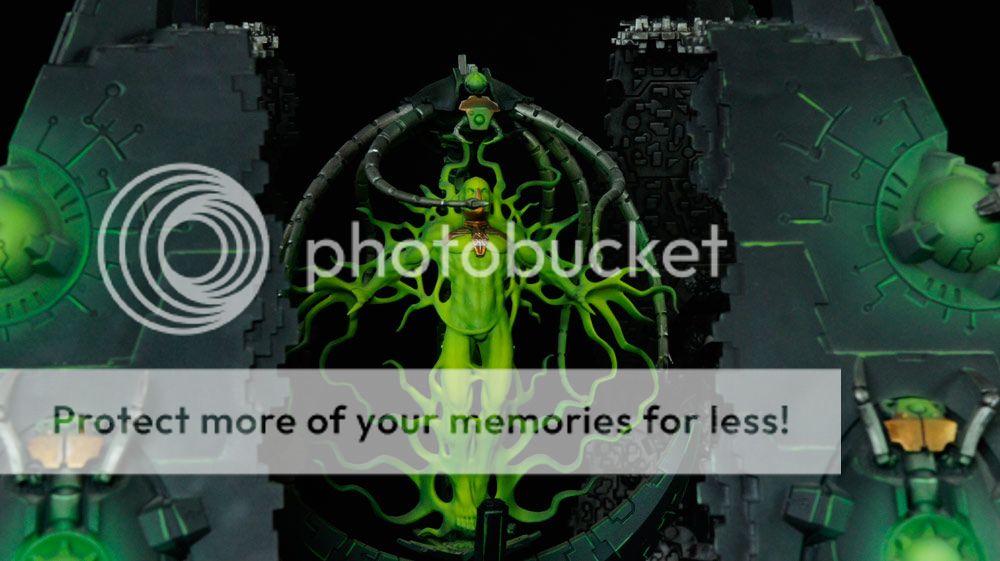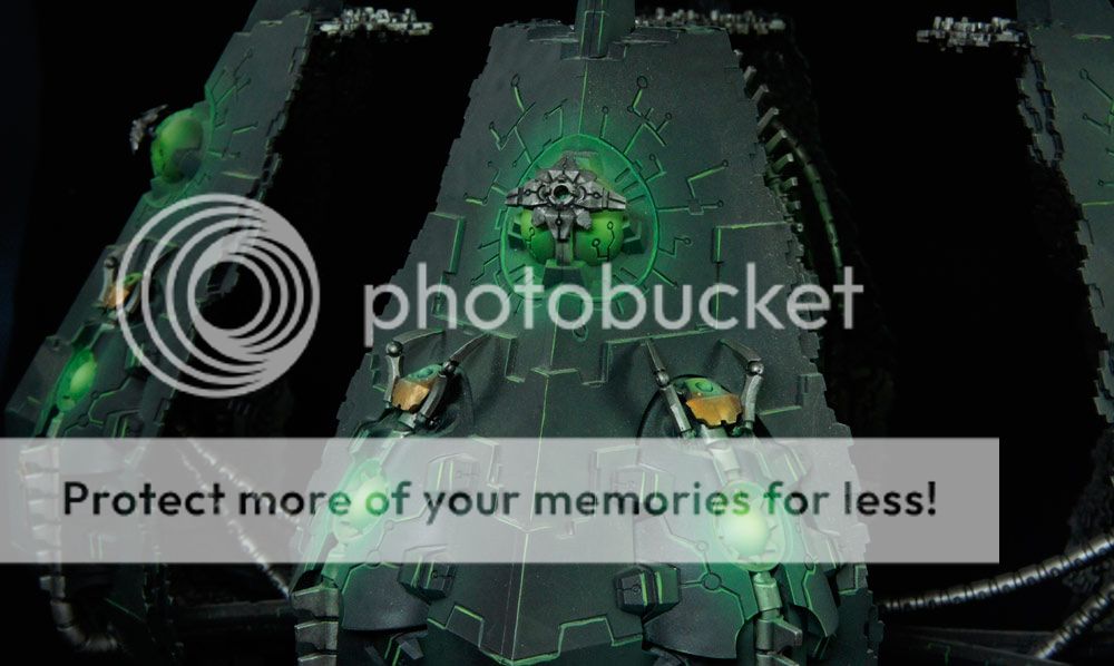Well I based the paintjob around the official scheme, as per the clients request. So the colours(or lack thereof) was out of my hands. Also, they're Necrons. Black green and silver are the only colours they know :-p
