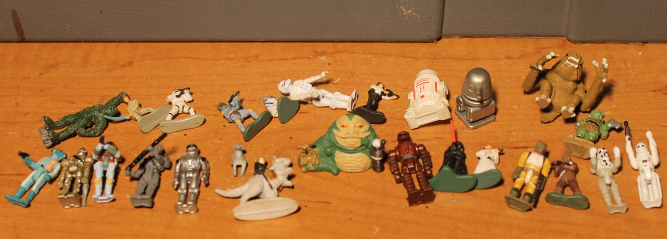 AT-PT Walker Tusken Raider on Bantha Storm Trooper hover vehicle Ertl (plastic) 2x Gamorrean Guards 4x Rebo Band 13x various figures jabbas palace LFL (Die Cast) 6x Rebel Hoth Troopers 4x Snow Troopers Micro Machines (Various size miniatures) Storm Trooper on Dewback 25x Various figures
