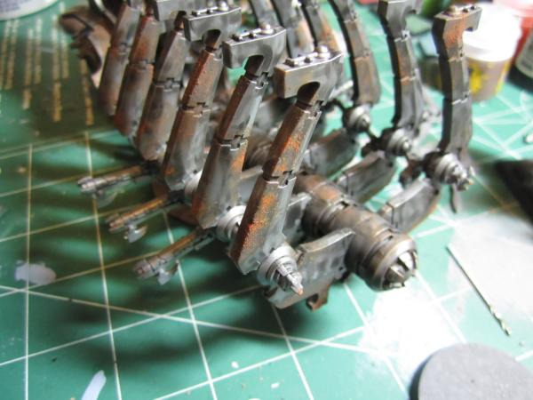 You should probably use typhus corrosion before using Rhya rust, because it gives a texture for the subsequent dry brushing.