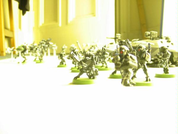http://imgur.com/gallery/iESPu I took a long hiatus when painting my tau, thats why theres such a drastic difference between the Riptide (first tau i painted) and the Ethereal (most recent outside cannonfodder firewarriors, which i dont paint with any degree of detail as it takes too long doing that to 50 tiny models i remove in droves). Im currently working on my Buffmander model, and in term trying my hand at highlights and edging since i almost never do it. Got the basics of him done, though aside from his armor nothing is edged or has any effects yet. Need to give his shield a heavy glowing effect and put some hazard lines on his flamer....and of course the white after i wash his armor. Not a fan of in-progress pics unless its a kitbash, so i dont have any of my buffy.