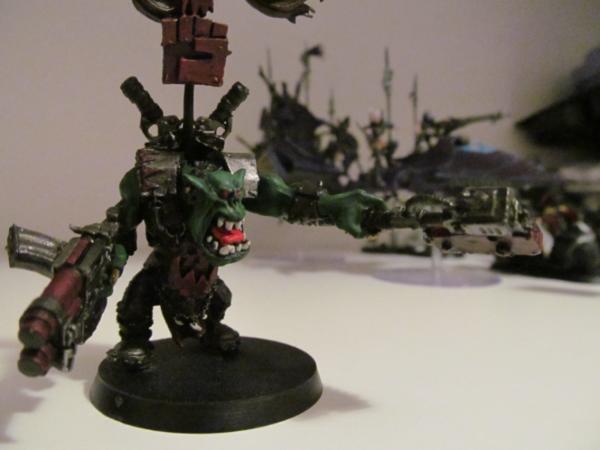 Sadly a year or two after that, the model became lost and was not able to re do the paint effect since. But a few days ago, decided to buy the old model that I once painted and today after the days of hard work, finally finished him and glued him to his base. The base still needs to have some custom work onto it so it is blank at the moment, but wanted to share the Ork Warboss with all here on DakkaDakka