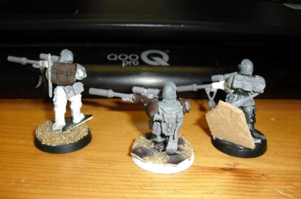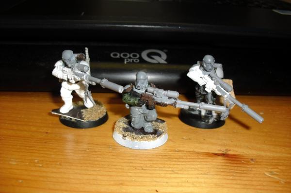 As I said I've been working on a sniper squad. After reading the new army book, for this squad I'll need 6 units (3 snipers and 3 guardsmen/traitors). Well the snipers are ready to blow some heads!