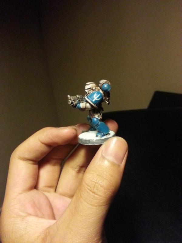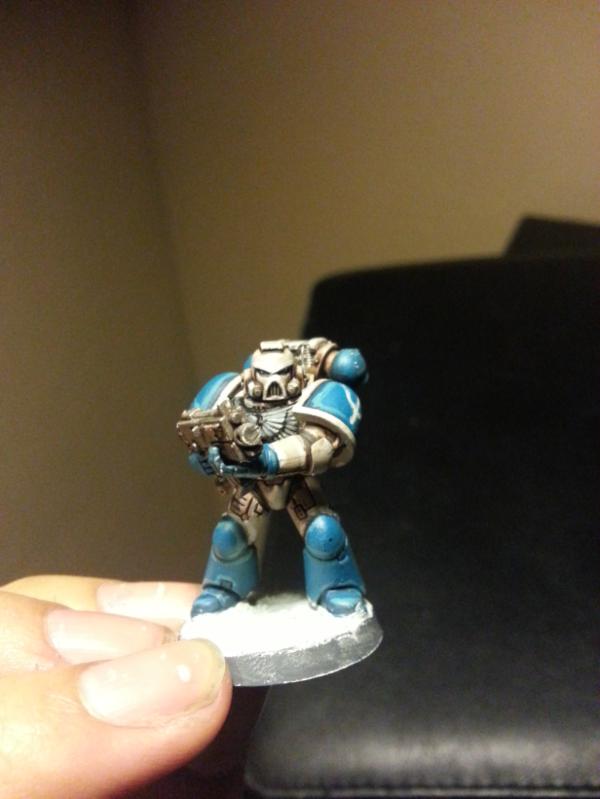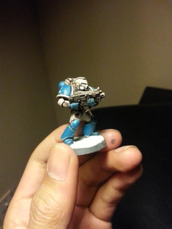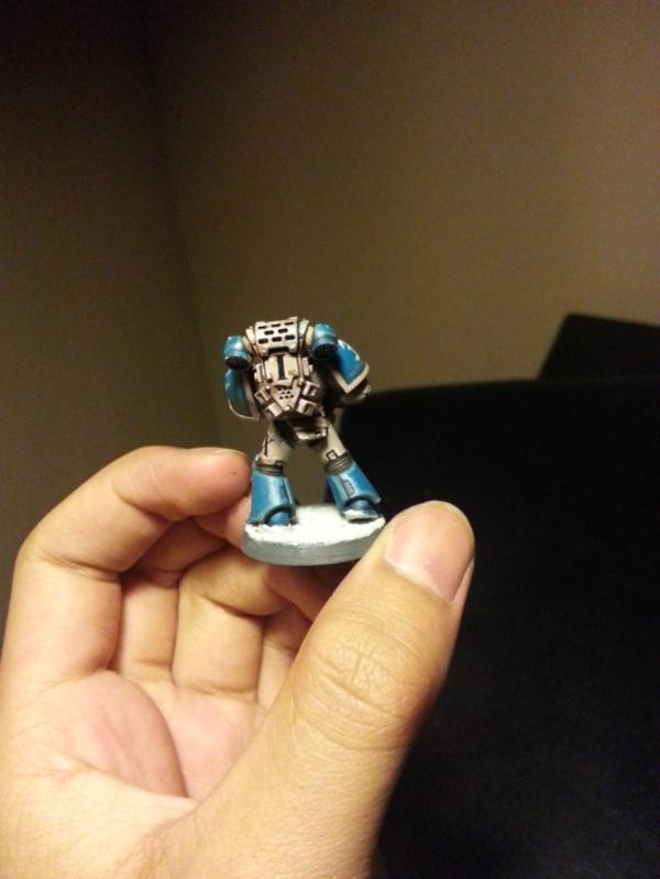 Hey guys! Just finished up my Tau, so I decided to go back to marines. Here's the test model for my custom chapter, Sons of the Kraken.
