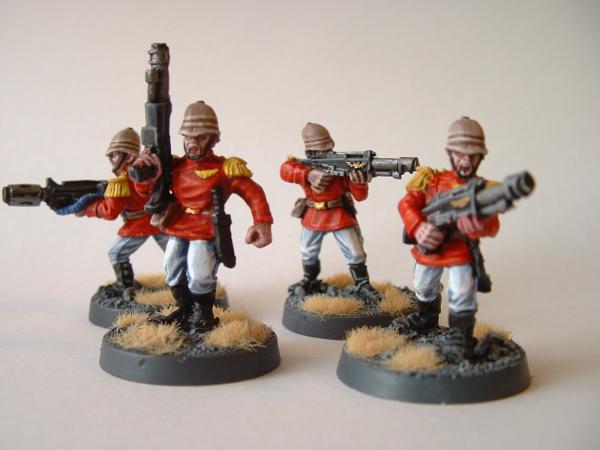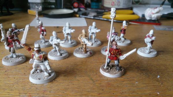 Thanks! I hear what you're saying about the lasguns, but I was going for a bit more contrast in colour between the black and red. Also, I am going to paint gold onto the knives, but I dislike painting gold so I'll probably do it last...