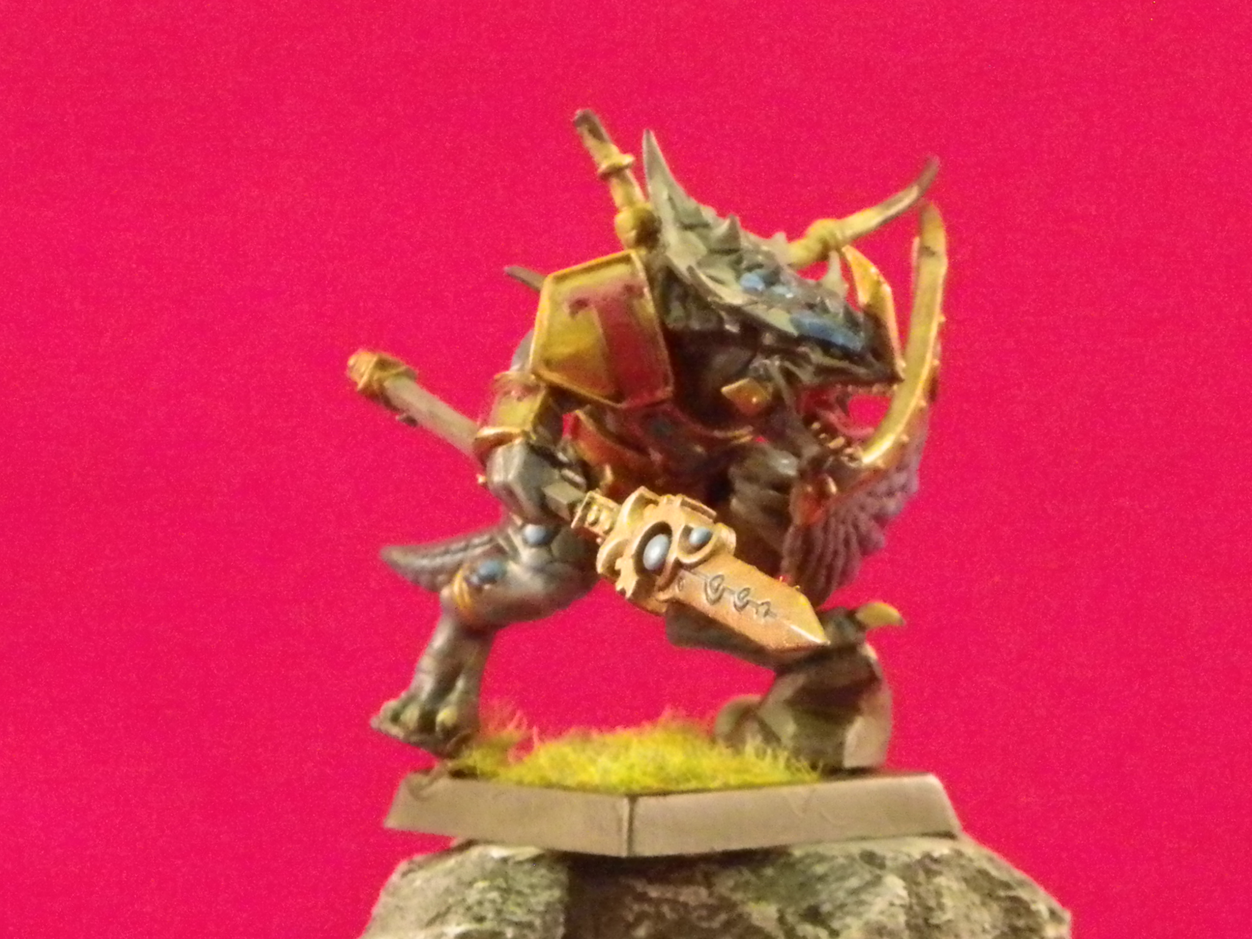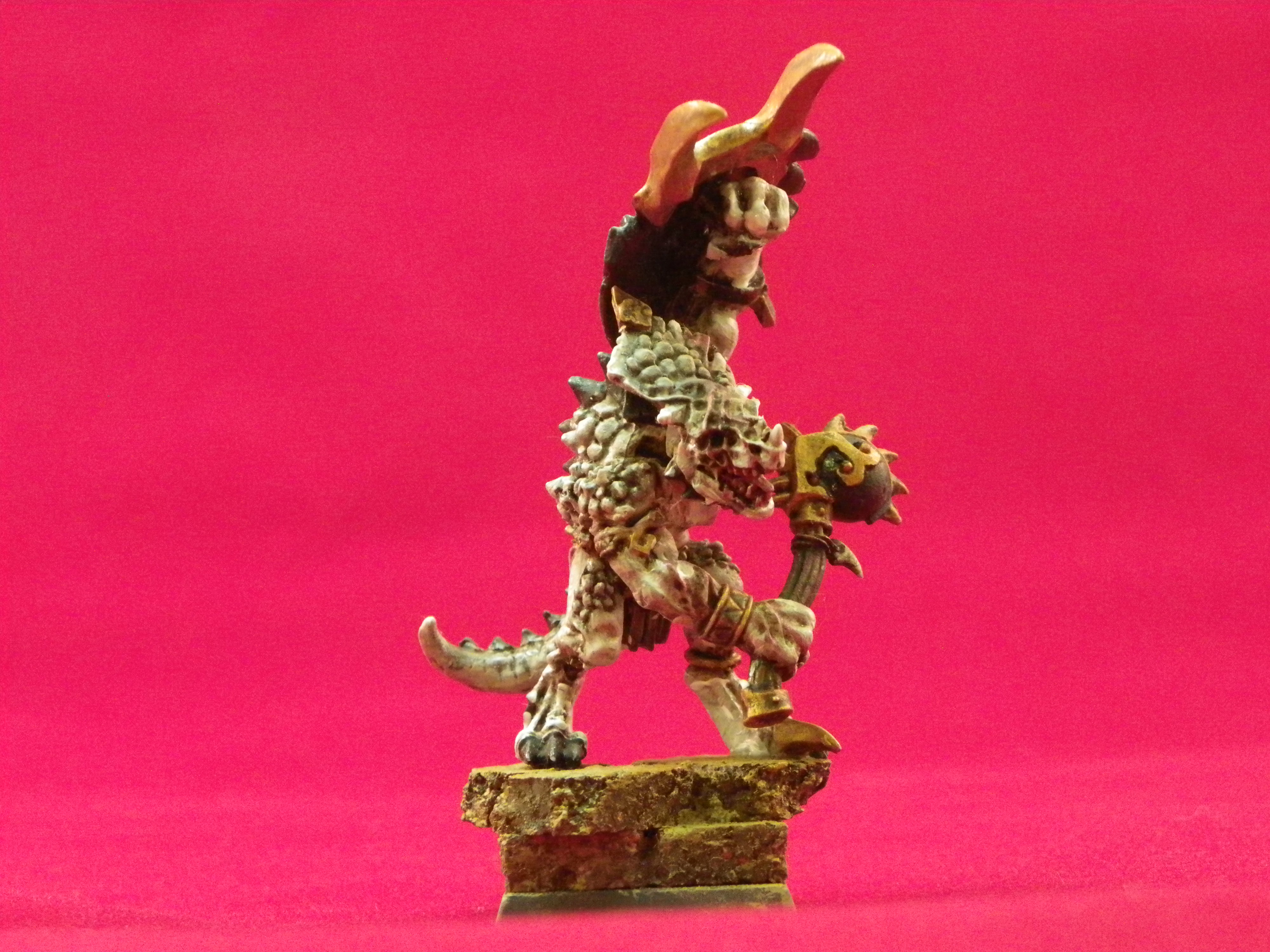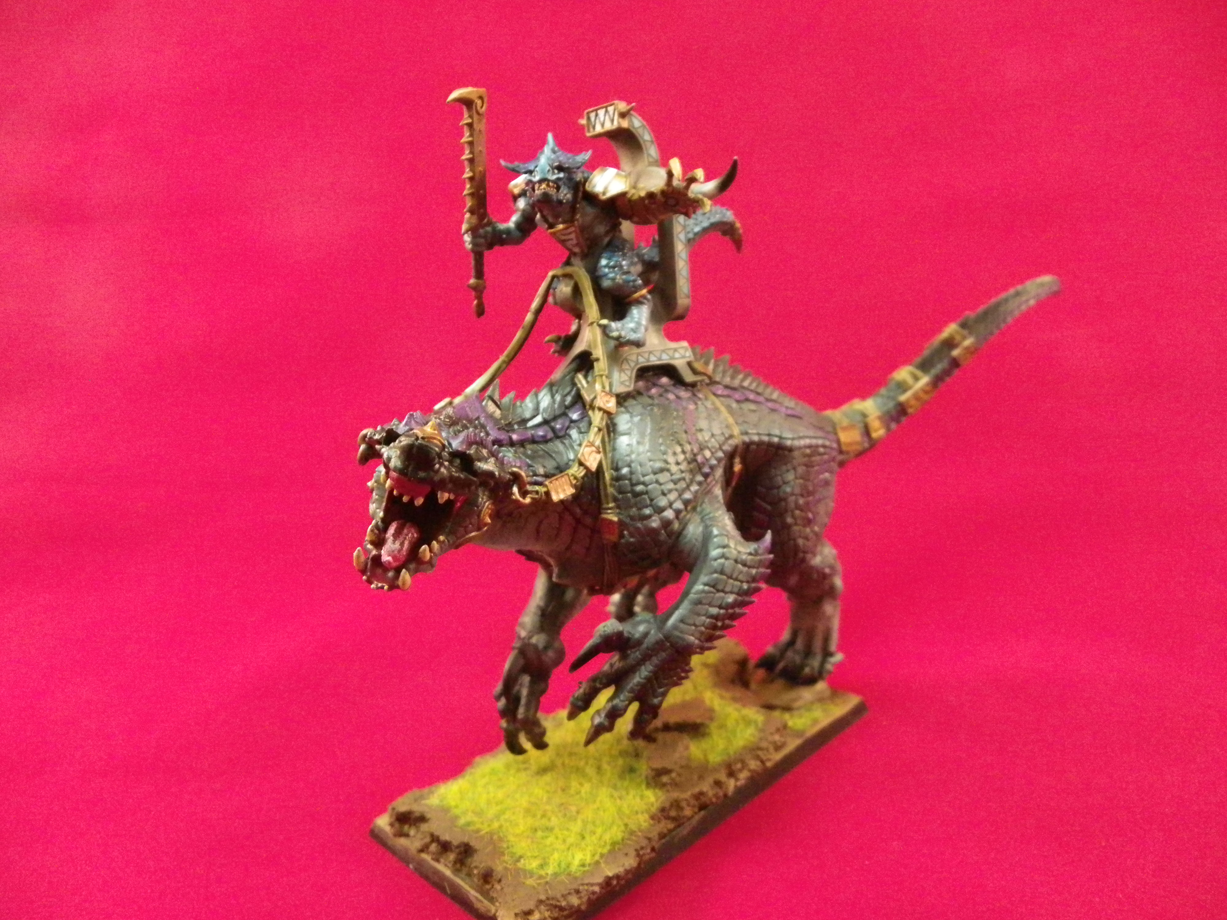 Here are a couple of Lizardmen I have completed for my son's army (one of his many armies). Sorry about the red background. Hindsight is always 20/20. Let me know what you think.