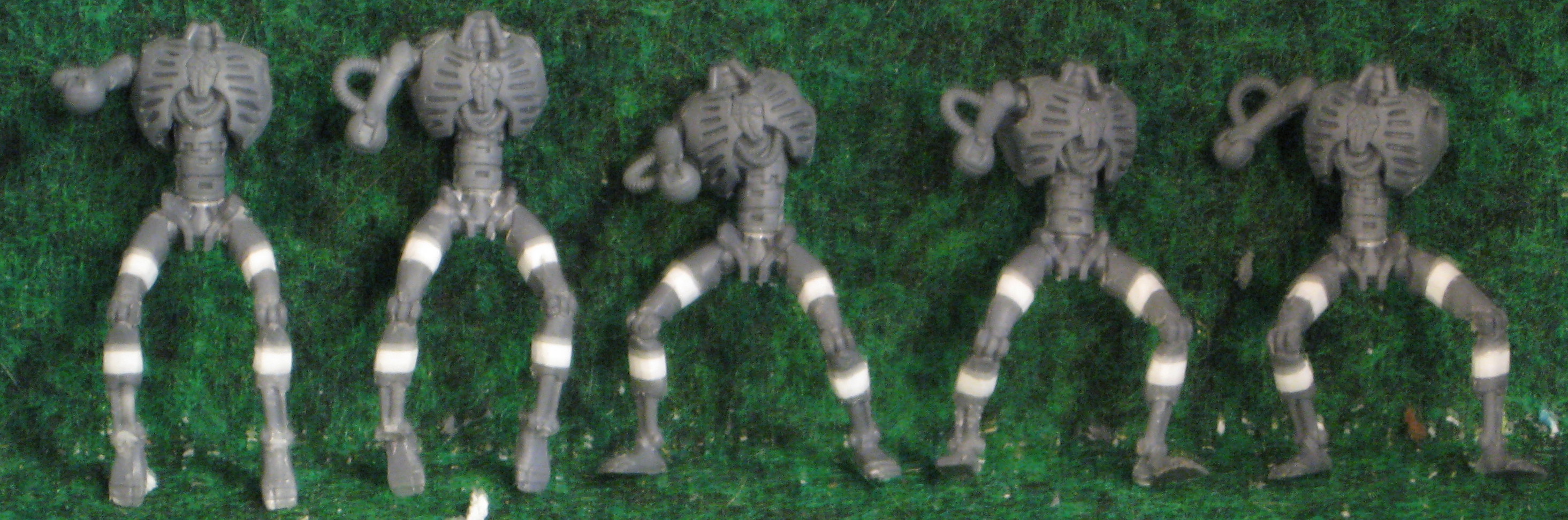 The white plastic is the plasicard spacers that lengthen their legs, pre-dremeling. Make the Warrior legs proportionately sized for the Destroyer bodies. If you look at the built guys from before, you can see the white stripes on their legs.