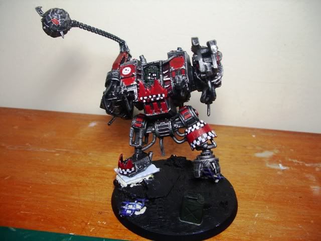 I have finally started painting the Big Mek. It still needs the rust, and does anyone know how to paint the glass effect for the goggles?