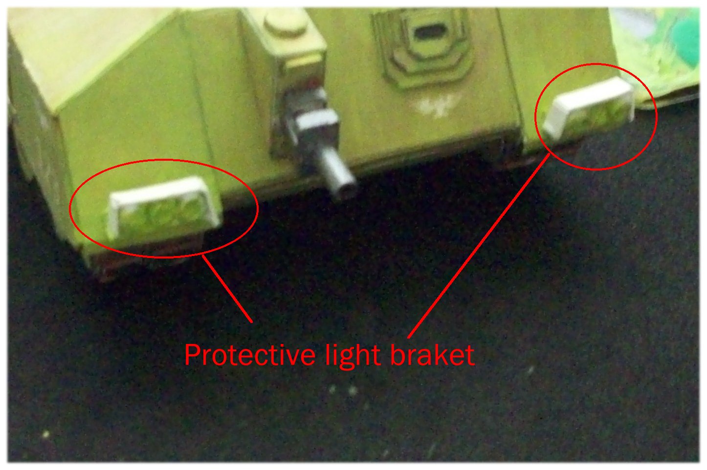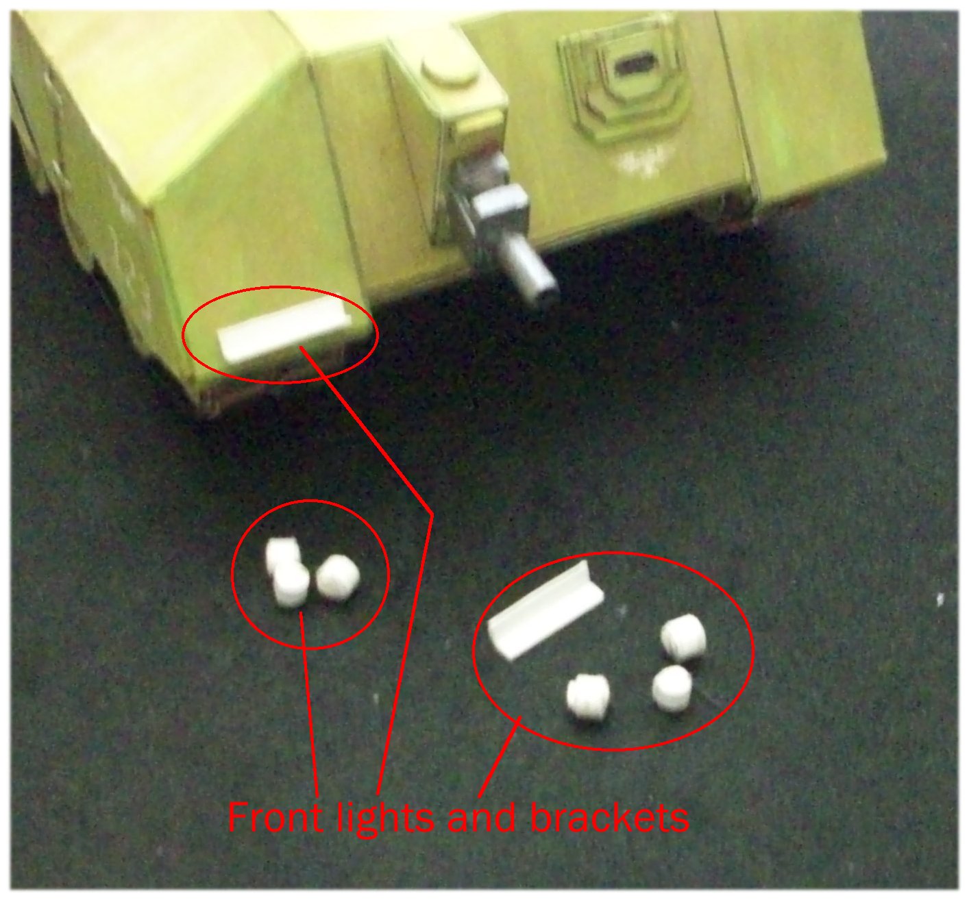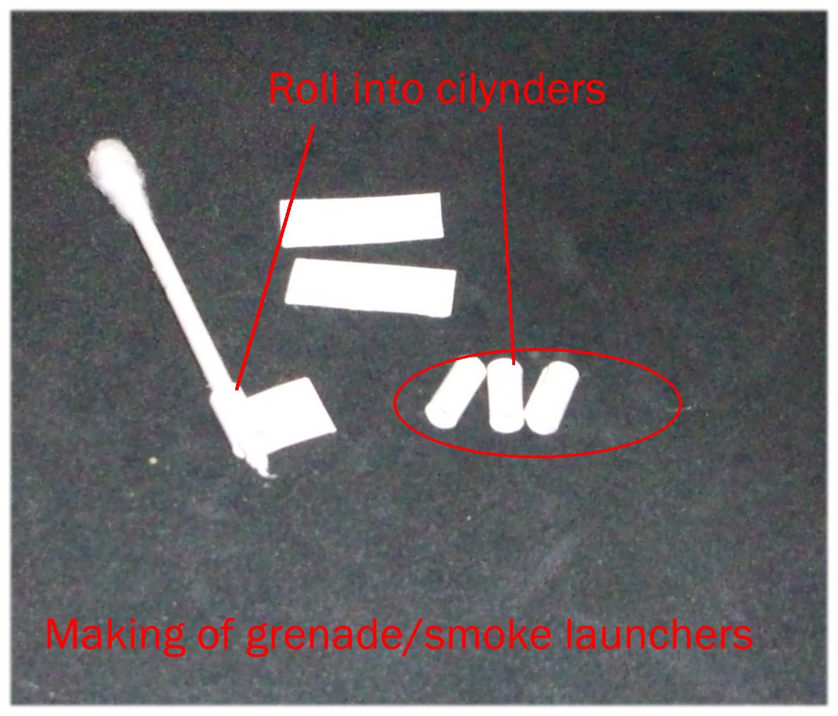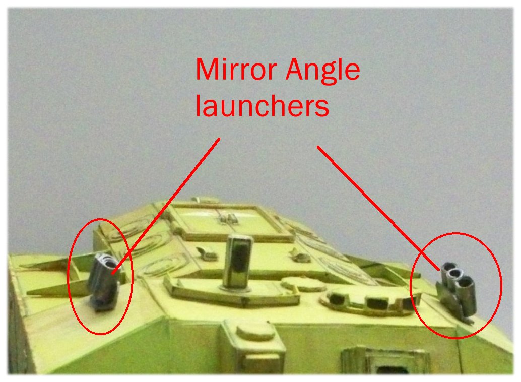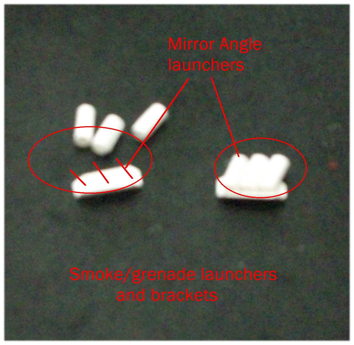 The smoke /grenade launchers are rolled tubes painted gunmetal and can be placed where you please.