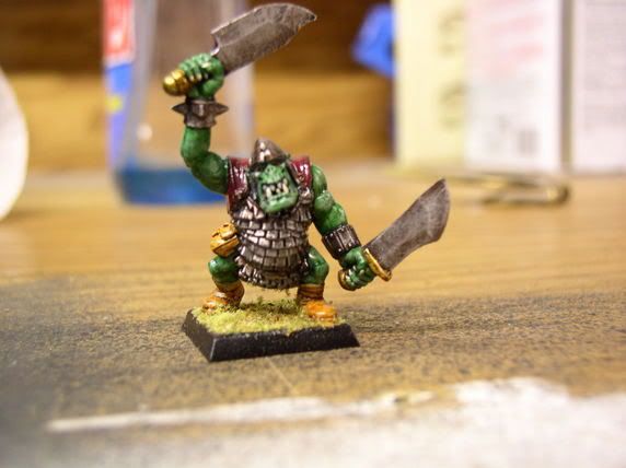 my first model was horrid!!! it was an orky i loved his paint job but a dribbly coat of blue covered him i was really sad...