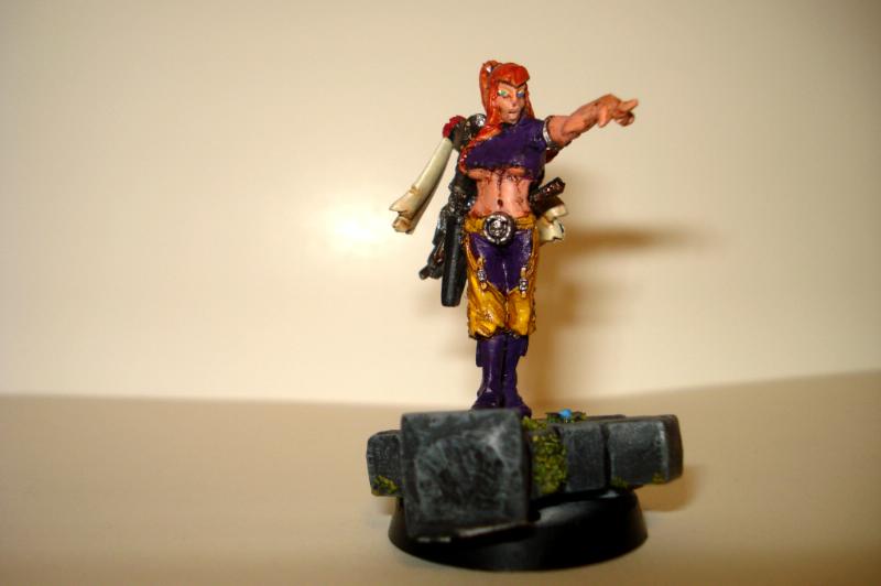 I got a little work still to do with her, going to do some layering with paints to get rid of some of the "messy" and "glossy" look. Some dry brushing too. Still undecided about the weapon.