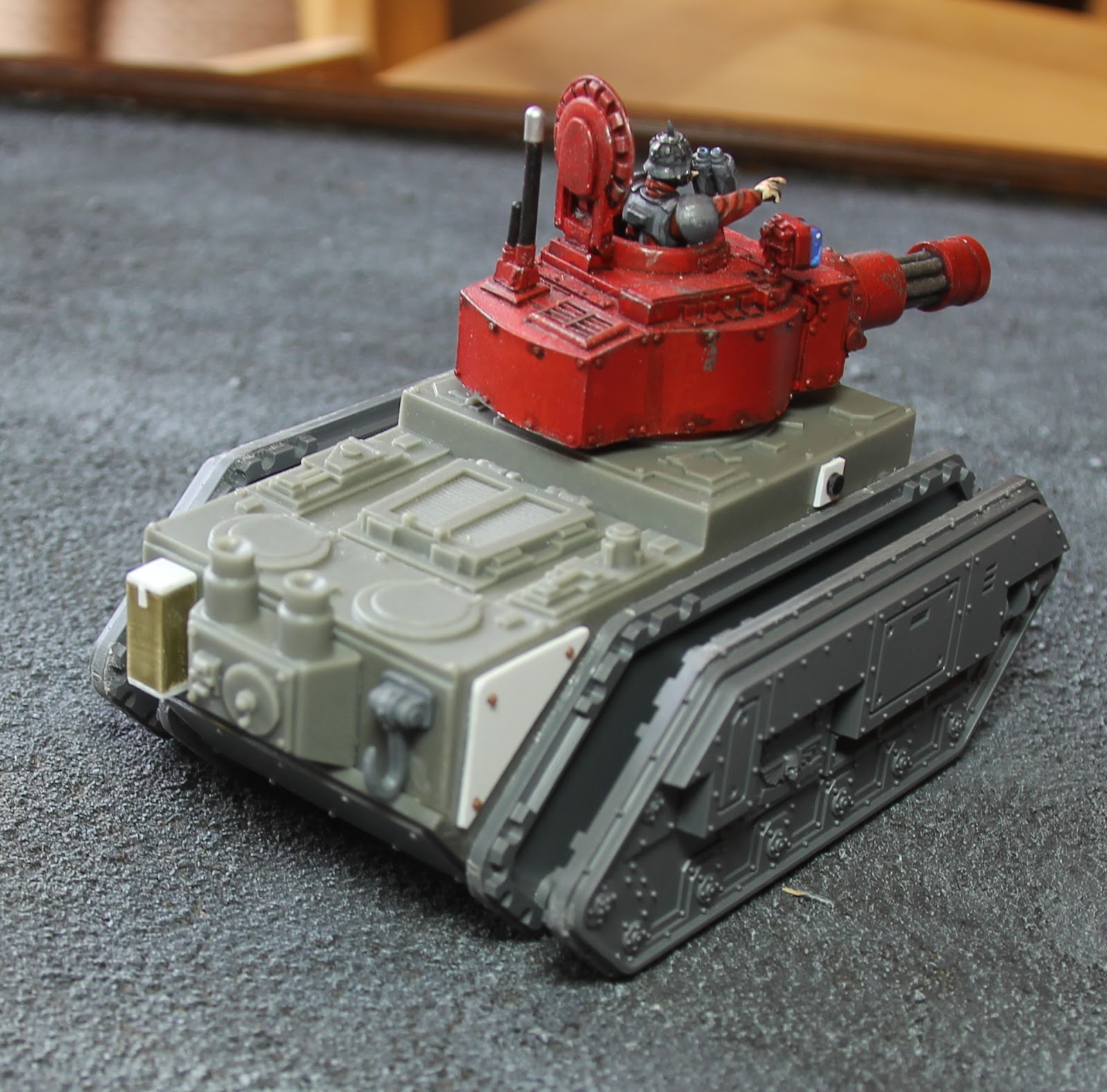 Here's a very early stage of a WIP for an Arbites Rhino - I've started on some roof lights and a set of bull bars - it's the LPAD (Lavura Prime Arbites Detachment)