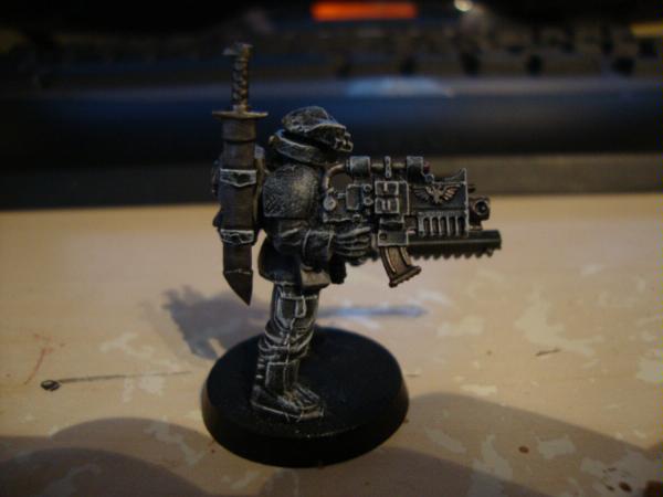 These are the legionaries I know the pictures crap but you get the idea. They have catachan legs the cadian parts with pig iron gas masks I figured the gas masks suit as it makes them look a bit mean and they would get sent into the crapest places out so they would need them, also seperates them from the "real guard"
