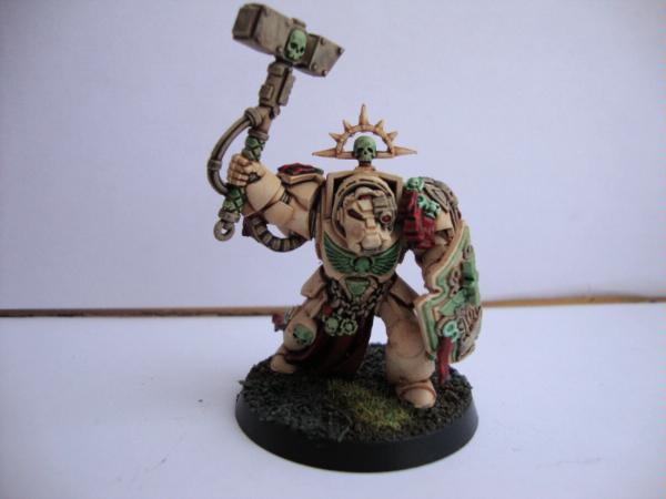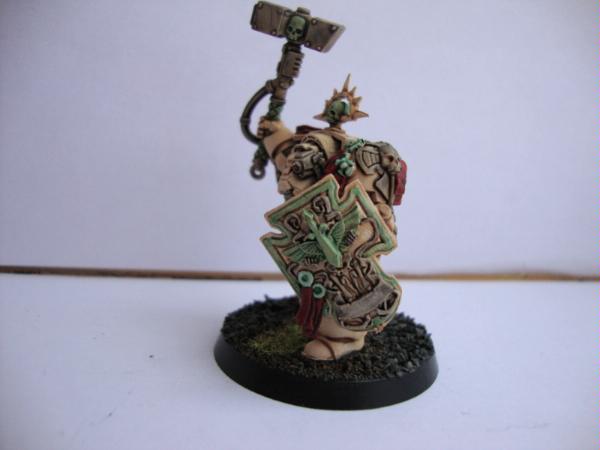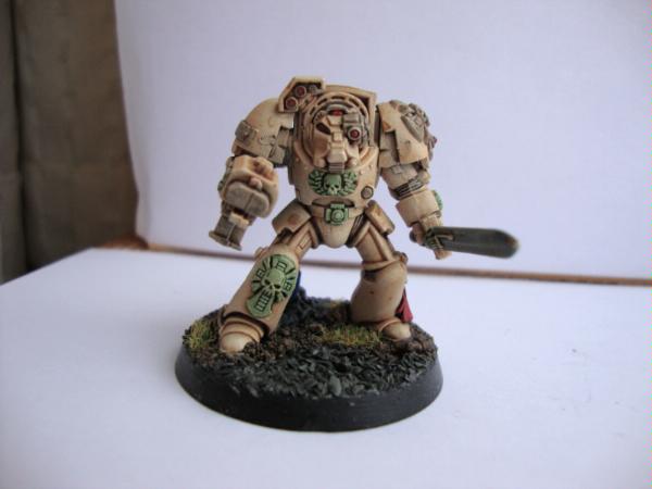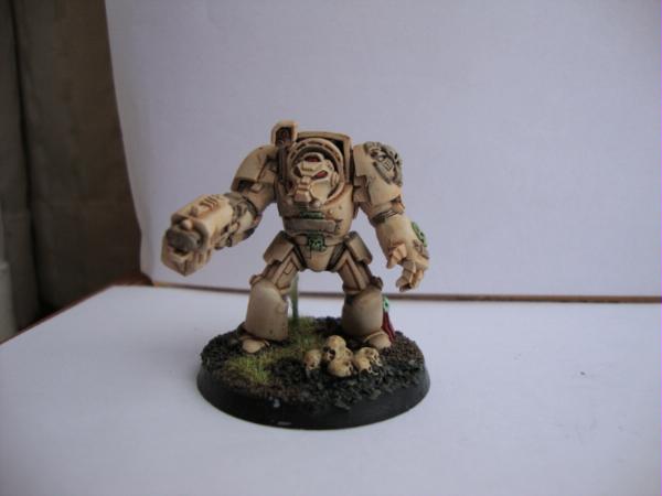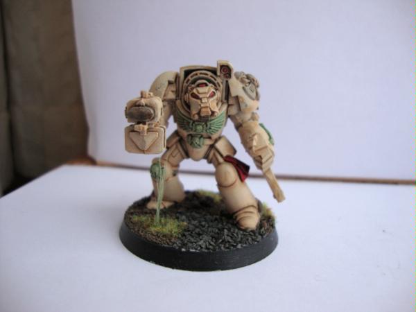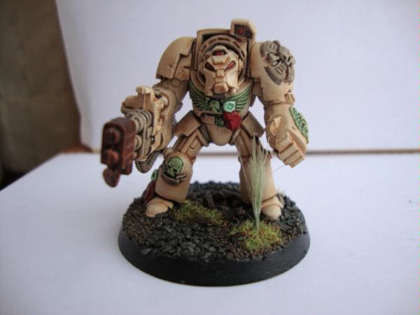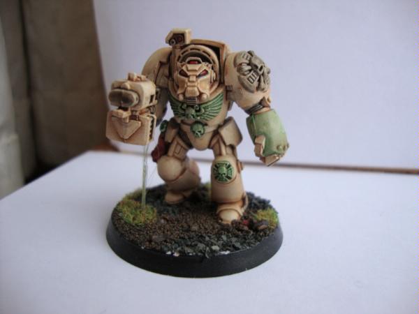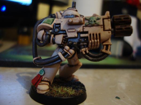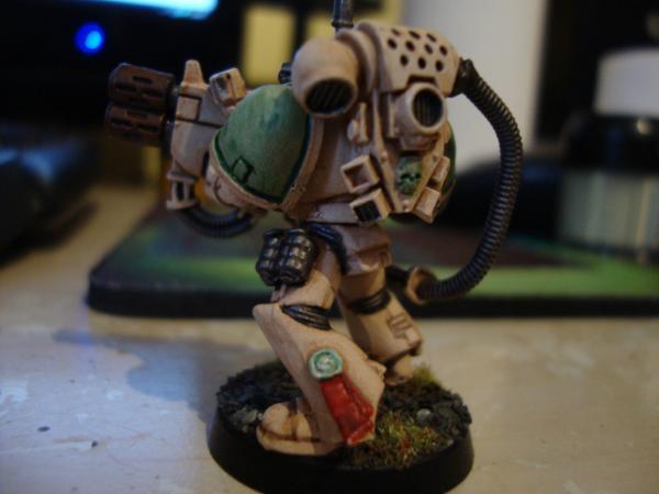 Basicly Ive added some devlan mud to the model for shading some dark angel green to the edge of the shoulder pads and painted and washed the metal parts instead of them just being a black wash.