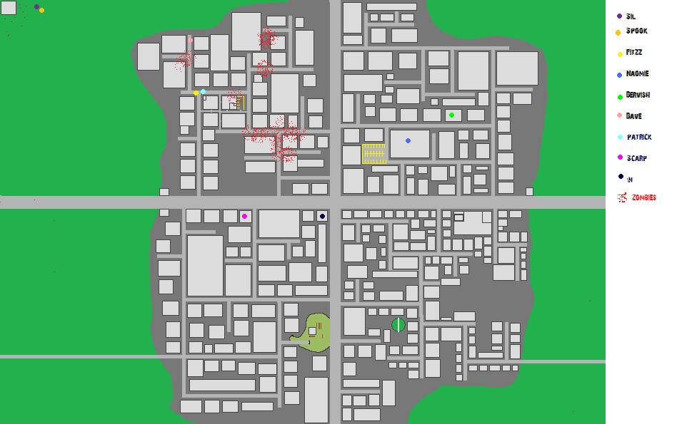 Ok i suppose im going to have to remedy this. My origonal plan was to have the entire town still populated. However, it seems, the undead have managed to sneak in past the guards. So, ill draw my self a town map for all you guys  where ill plot the infection outbreaks, the safe zones, and the population points