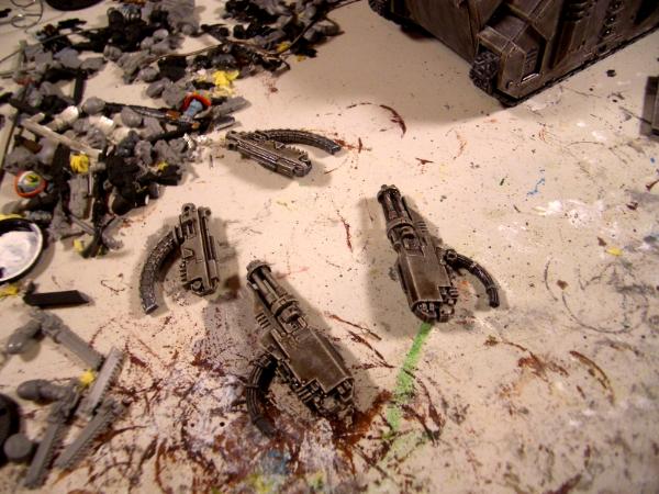 I had some Tau battlesuit burst cannons sitting around in my bits bags and I was able to convert the lascannons to something that could be considered as laser powered assault cannons. Though the main part is that I have something that looks like a twin linked assault cannon for my razorback.