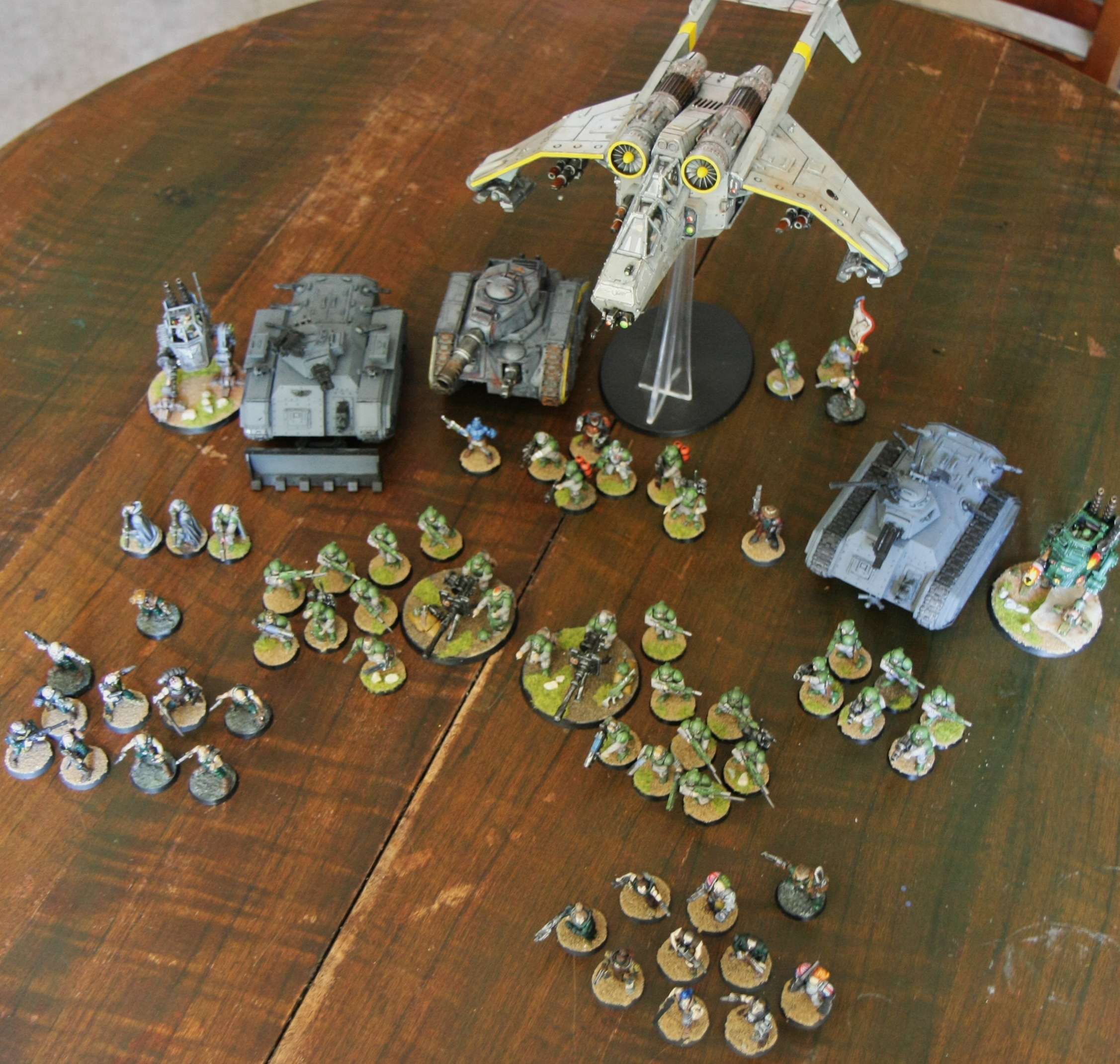 Figured I'd make a contribution to the excellent work that is showing up in this thread. I'm pulling together a Cadian army which has made it to a decent size (at least I can cover the minimums in a FOC) even if it is pretty badly imbalanced. Currently my troops would have to draw straws to get to see who rides in a chimera (which aren't fully painted yet anyway) and who has to walk.