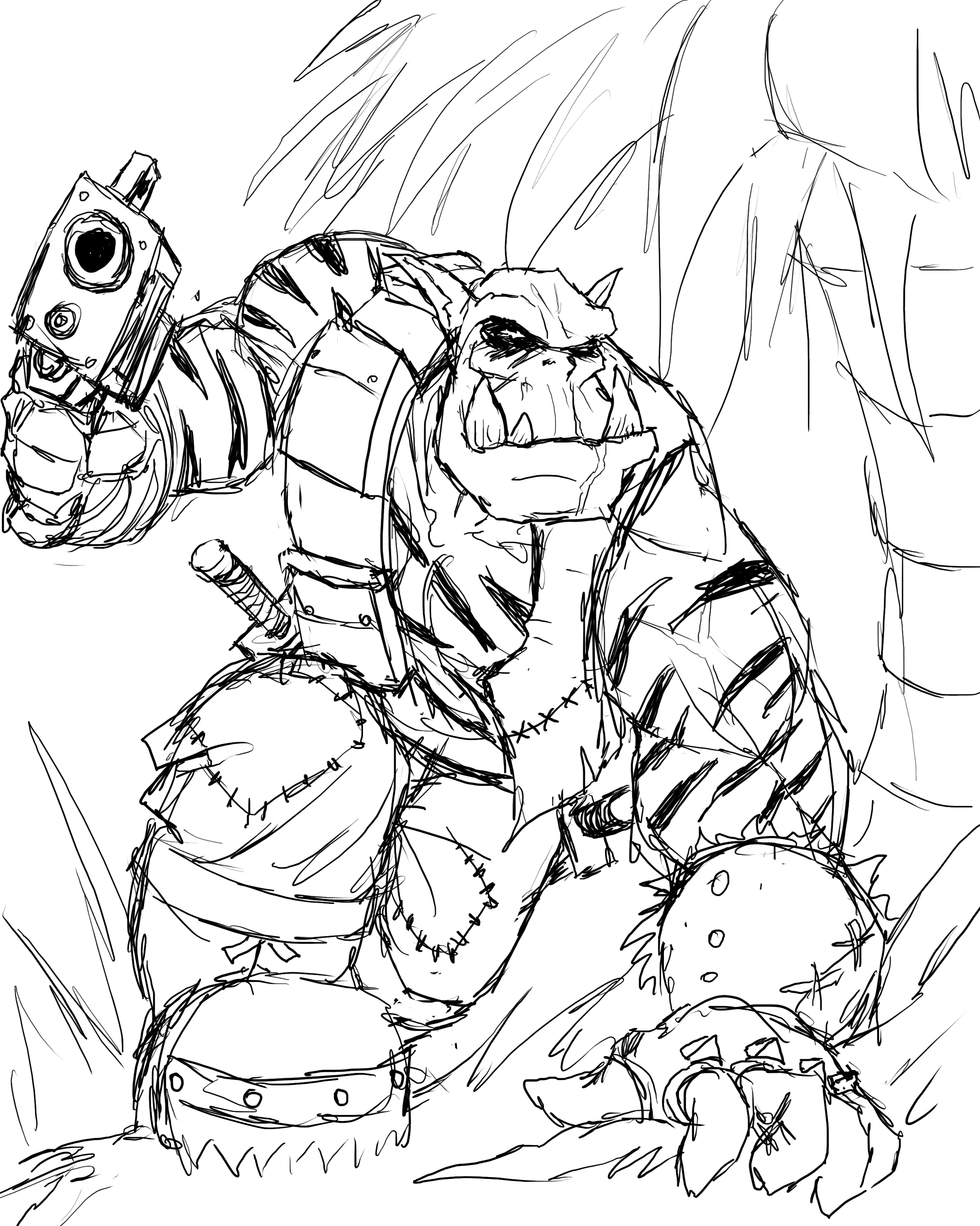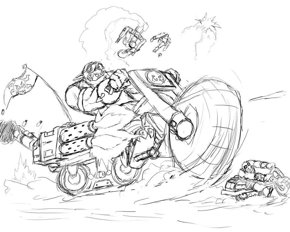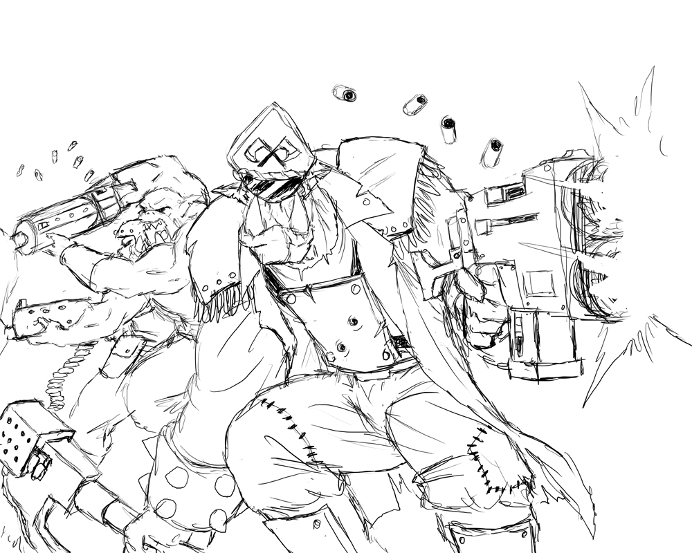 And I dont know if this guy is 40k, but I began drawing him and then it went a little in the way of a Vostroyan Firstborn. Without a moustache.