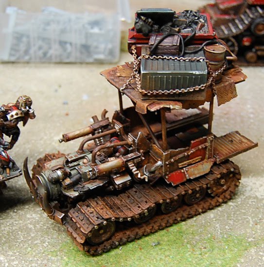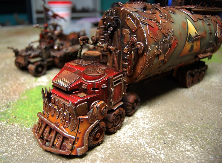 Made some good progress yesterday. Other than the Orks riding them these vehicles are about 50-75% done. The Battlewagons on the right are further along than say the tanker. Tanker still needs a lot more work especially the front end.