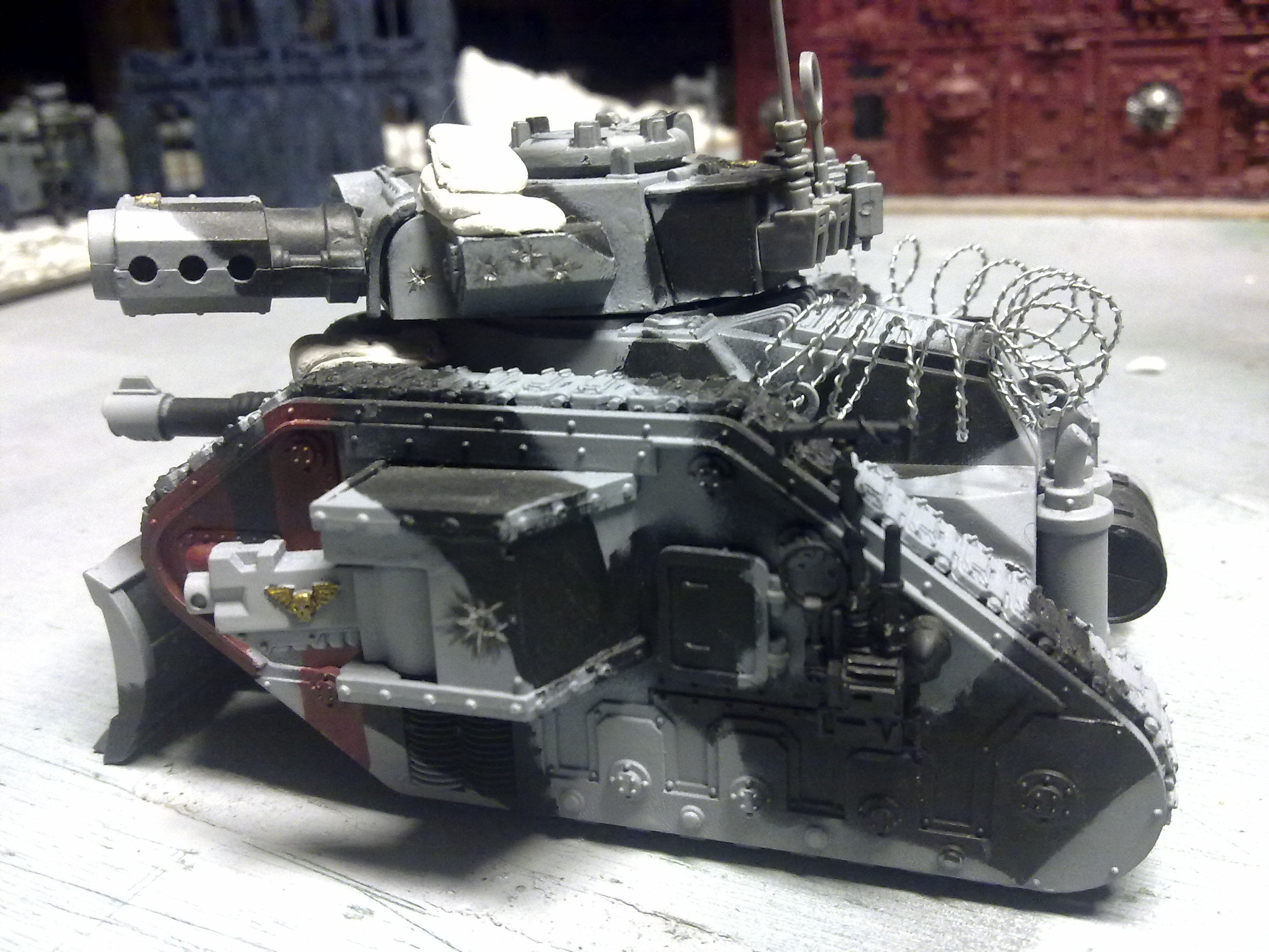 Thanks guys, yea 'Haonn' that is a leman russ punisher. I finally played the game with my brother the other day it had been set up for almost a week by that point begging to be played. It was an awsome game and im happy to say an imperial victory i lost just ova half my army mostly because i kept charging large numbers of cadians in combat to out number the nids it worked just... i needed to keep the tyranids away from my tanks and heavy guns and wat better way than sacrificing hand fulls of cadians to do that? The Vostryans were easily the stars of the match surviving a charge from a carnifex a hive tyrant and a tyragon prime plus hand fulls of lesser nids, only 10 of 60 survived but they killed almost twice there number thanks to having the first turn " thank the dice gods"!!!!