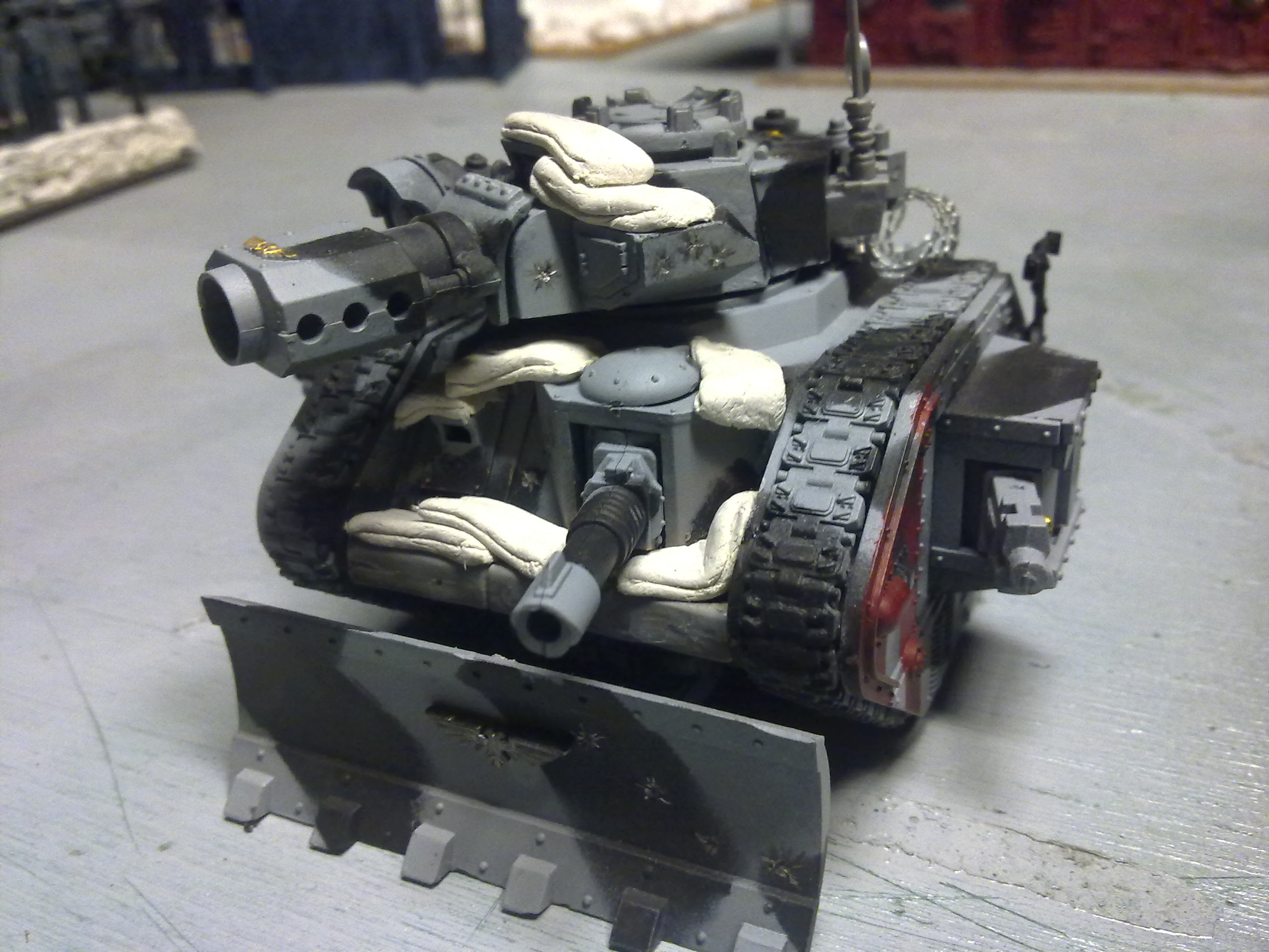 Just a small update for now as requested ill post a few photos of my Vostroyan army starting with my Leman Russ eradicator ive tried to make it have a more urban feel with the sandbags etc........ Im not sure if I like the razor wire though any suggestions ? should it stay or go ??? and should I make the grey a little darker use 'codex grey maybe'?