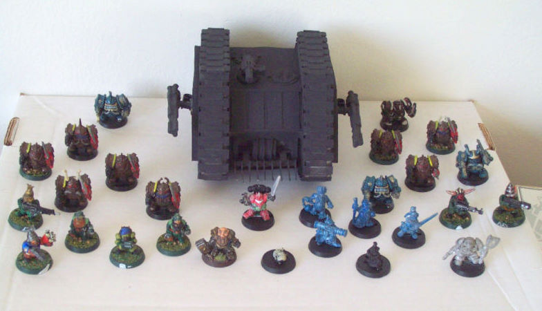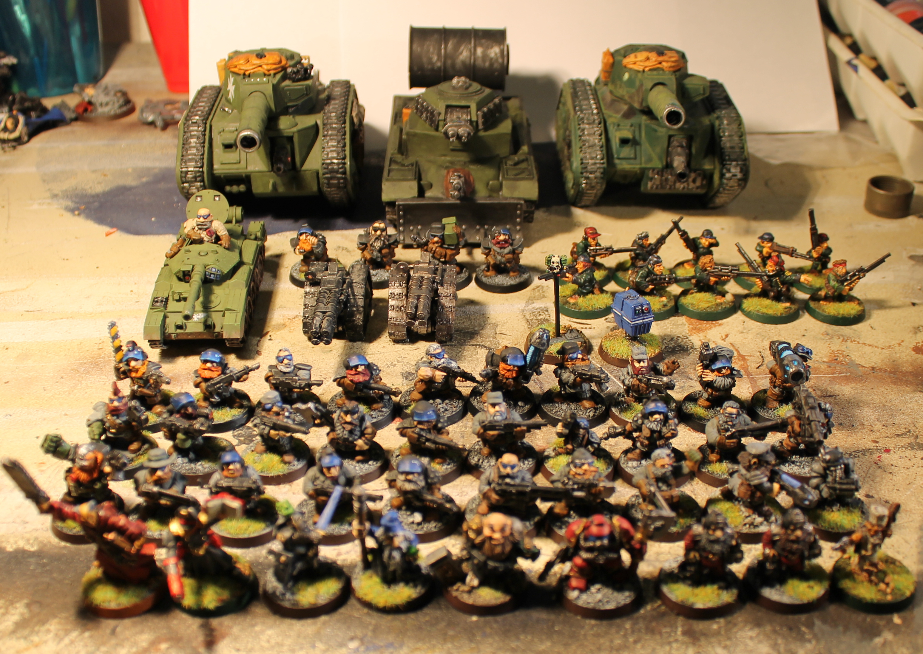 I've lost interest in my squats I will be selling my entire squat army for $400. It is completely painted to a high table top standard, includes 55 miniatures, 2 rapiers, and 4 vehicles. I used to field them as Imperial Guard Veterans so an Imperial Guard Commissar and Preacher are included (to keep them in line!) A lot of rare miniatures in this lot such as a ratling cook, adeptus mechanicus squat, and the first squat GW ever made. This is what it includes: