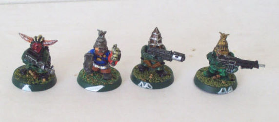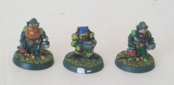 Actually.. these are the original Squat Command Squad models. The guy with the big horns would be the Warlord, seems to be missing the ancestor lord model, bald guy with a long robe and sword.
