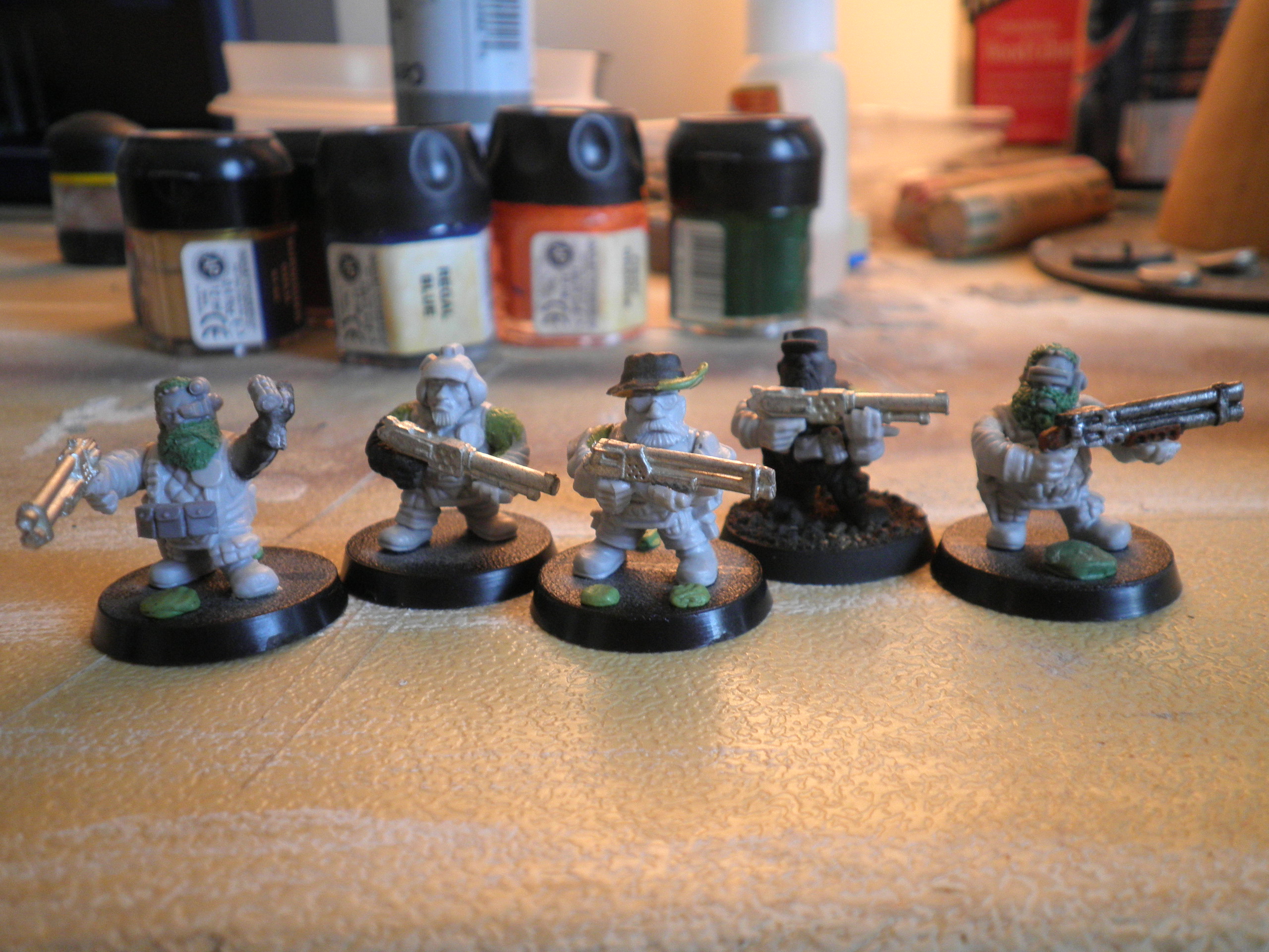 Finished my Veteran Squad today. Sgt with Powerfist and Bolt Pistol, Vox-caster with Bolter, three squats with flamers, and five squats with shotguns.