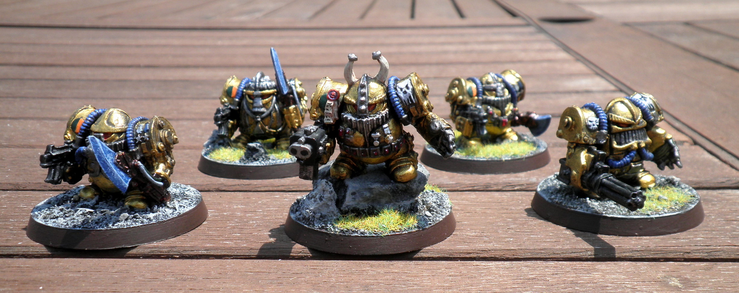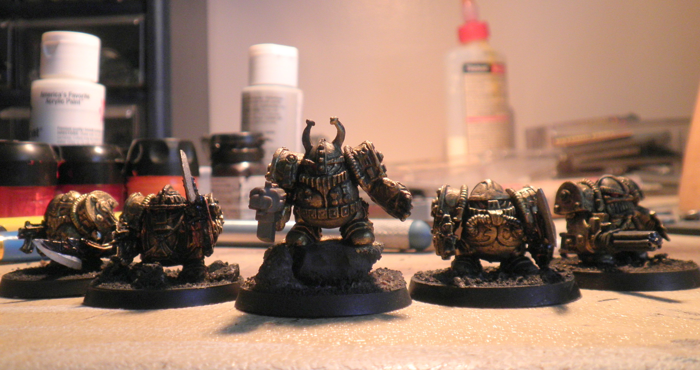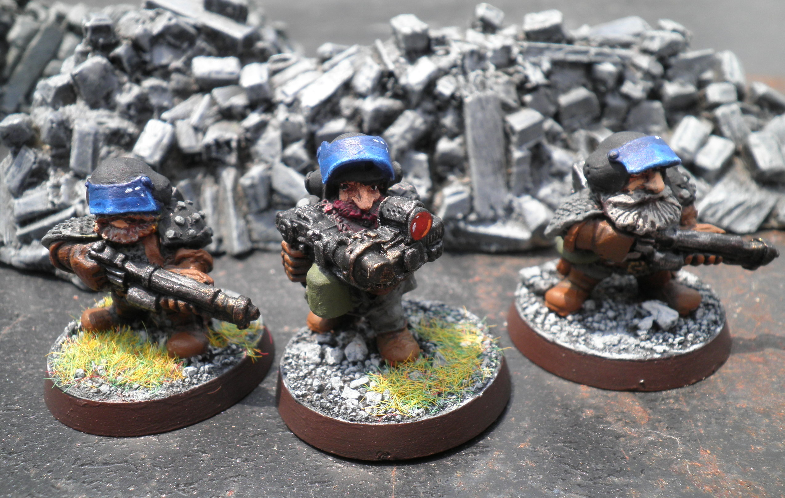 Yeah, I'm not sure how I feel about these models. They have the Warhammer and Warhammer 40k feel mixed into them. I don't think they are going to fit into the army scheme I'm going for. I'd be willing to trade them for regular metal squats if anyone is interested.