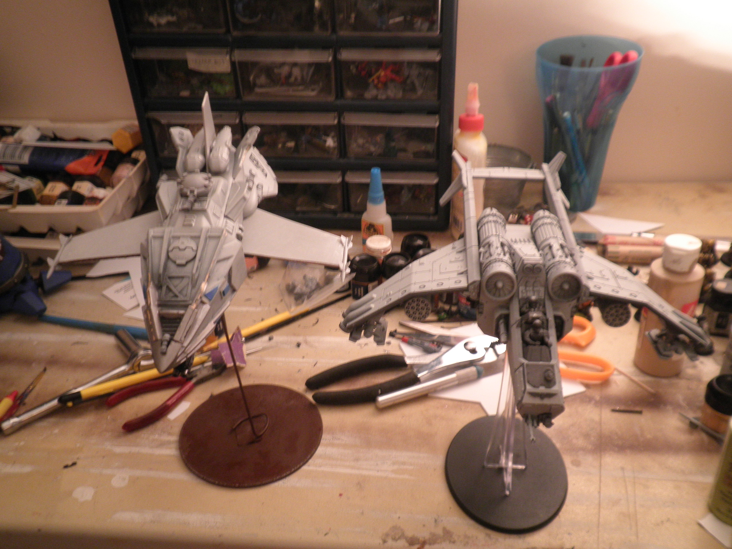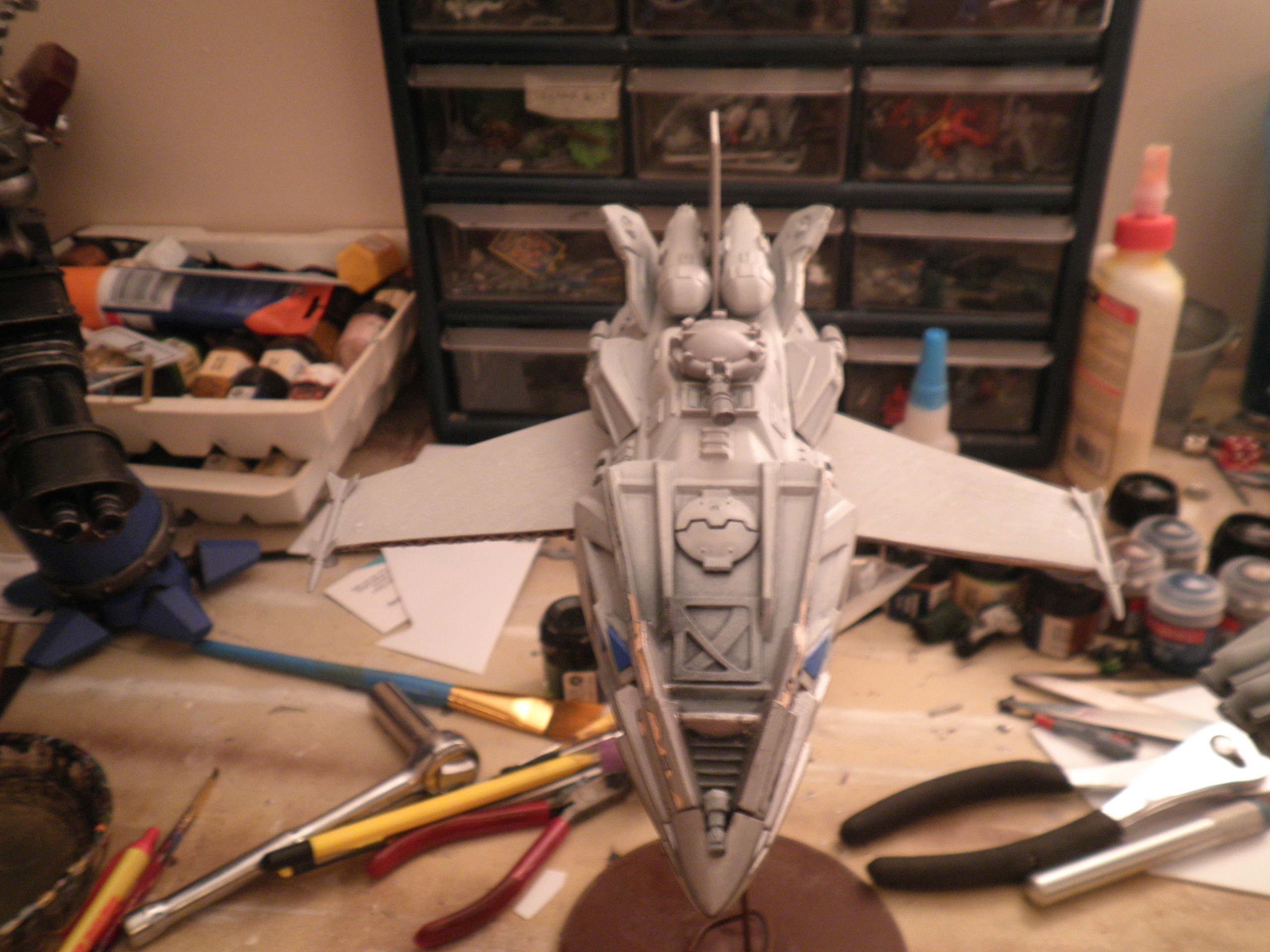 I'm still planning on adding much more detail to the wings and hanging hellstrike missiles underneath. Sorting through my bits box for more 40k bits to add to her. Thoughts and suggestions welcome.