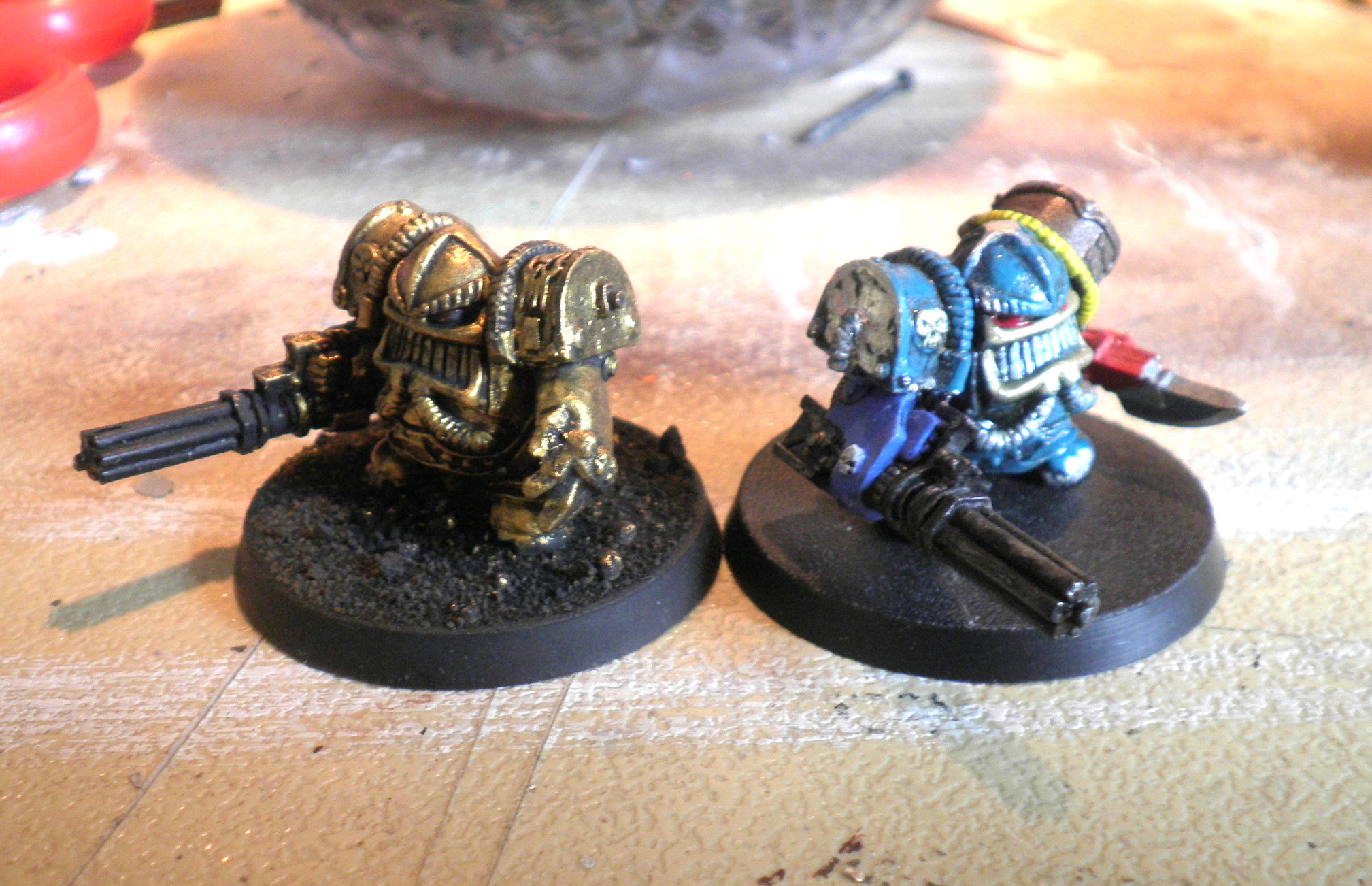 Enclosed are some more (WIP) Exo-Armour Squats. I have 10 fully assembled now, 5 more to go. One Segeant has a powerfist and the other a thunder hammer and storm shield. Each squad will have a heavy weapon as support. I have two assault cannons, the final squad will have a heavy flamer.