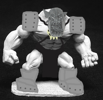 I think the head should be bigger, so it may need sculpting using a normal ork head as guidance, or possibly as a base and just bulk it out working outwards, by the way i got that sentinel did you want a look for size dimension or something?