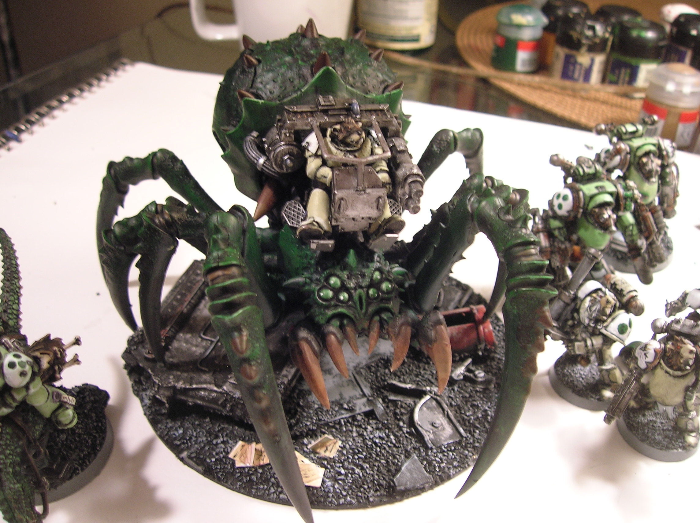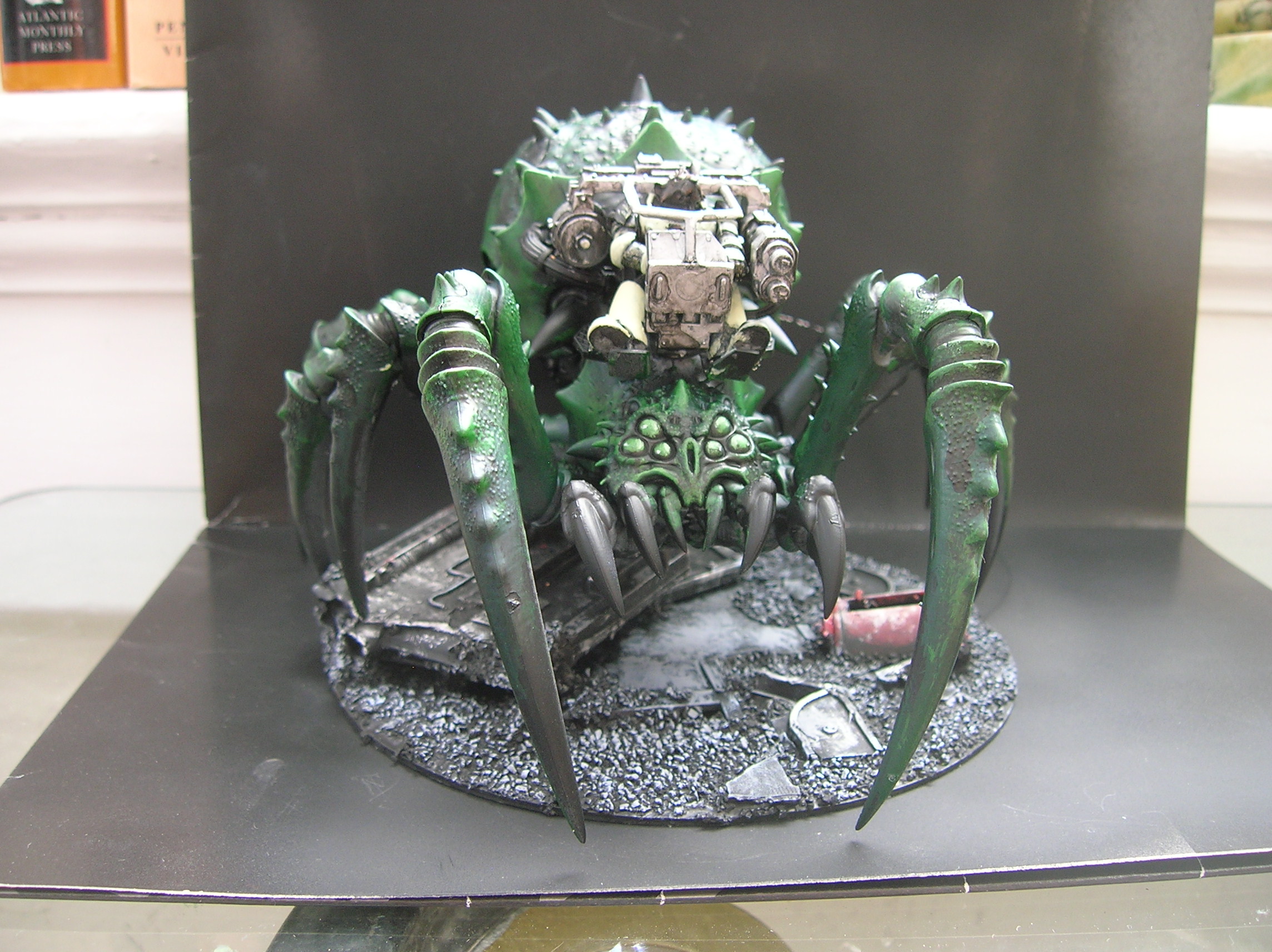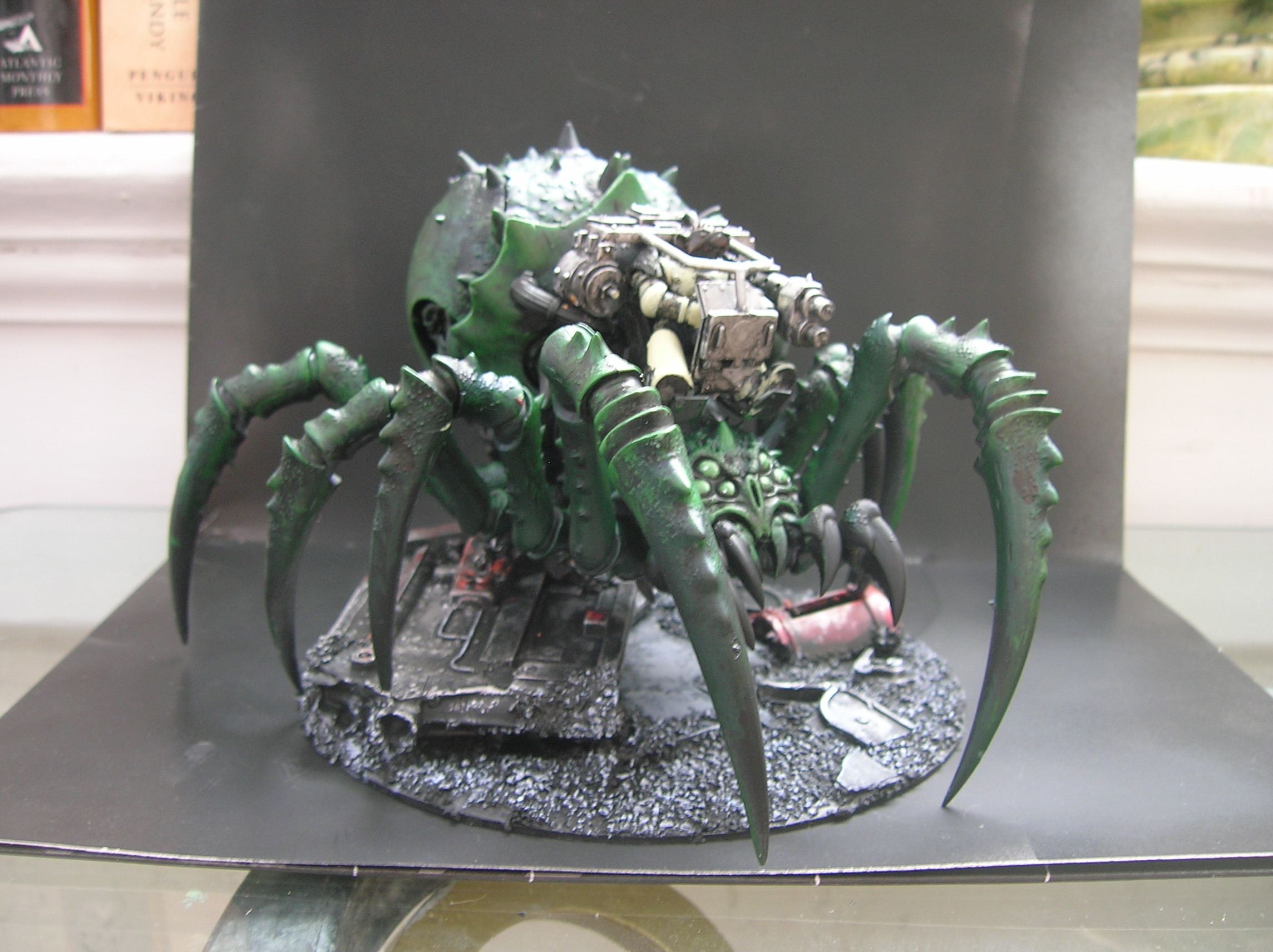 @yggs. Yeah I've been struggling with how to make the spider a little more "tech/futuristic" to fit into 40k. I think im going to put some guitar wire from the saddle to behind the spiders head to look like wiring going to its brain. Its going to have a mark of nurgle so I think the vomit cannon can just be assumed to come from its mouth. The ork big shoota (or what ever the hell that bit is ) will make a good "scavenged" autocannon, and Im going to trade a flamer for another dccw. I figure since this thing has fleet and Front AV 13 using it primarily for close combat makes the most sense. Anyway I could use some suggestions if you got any.