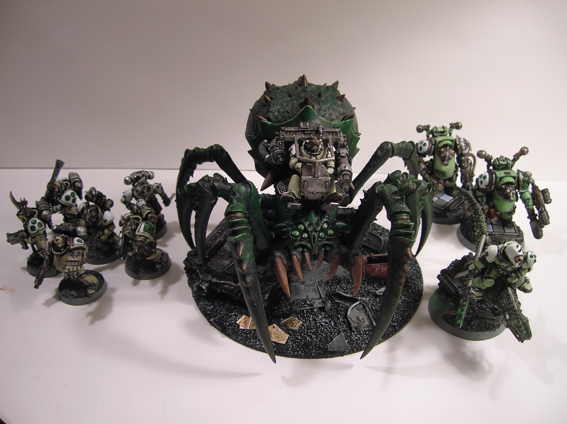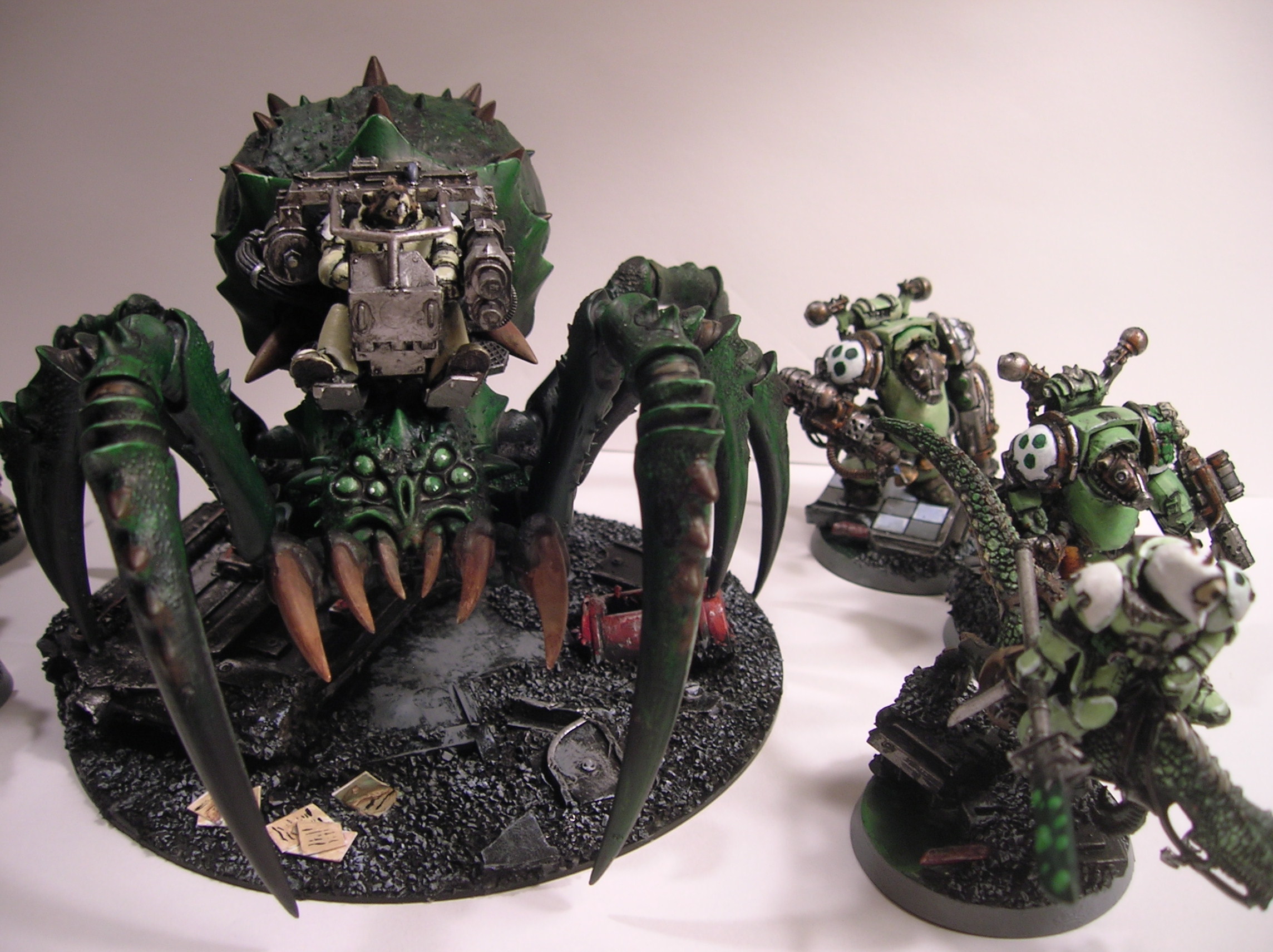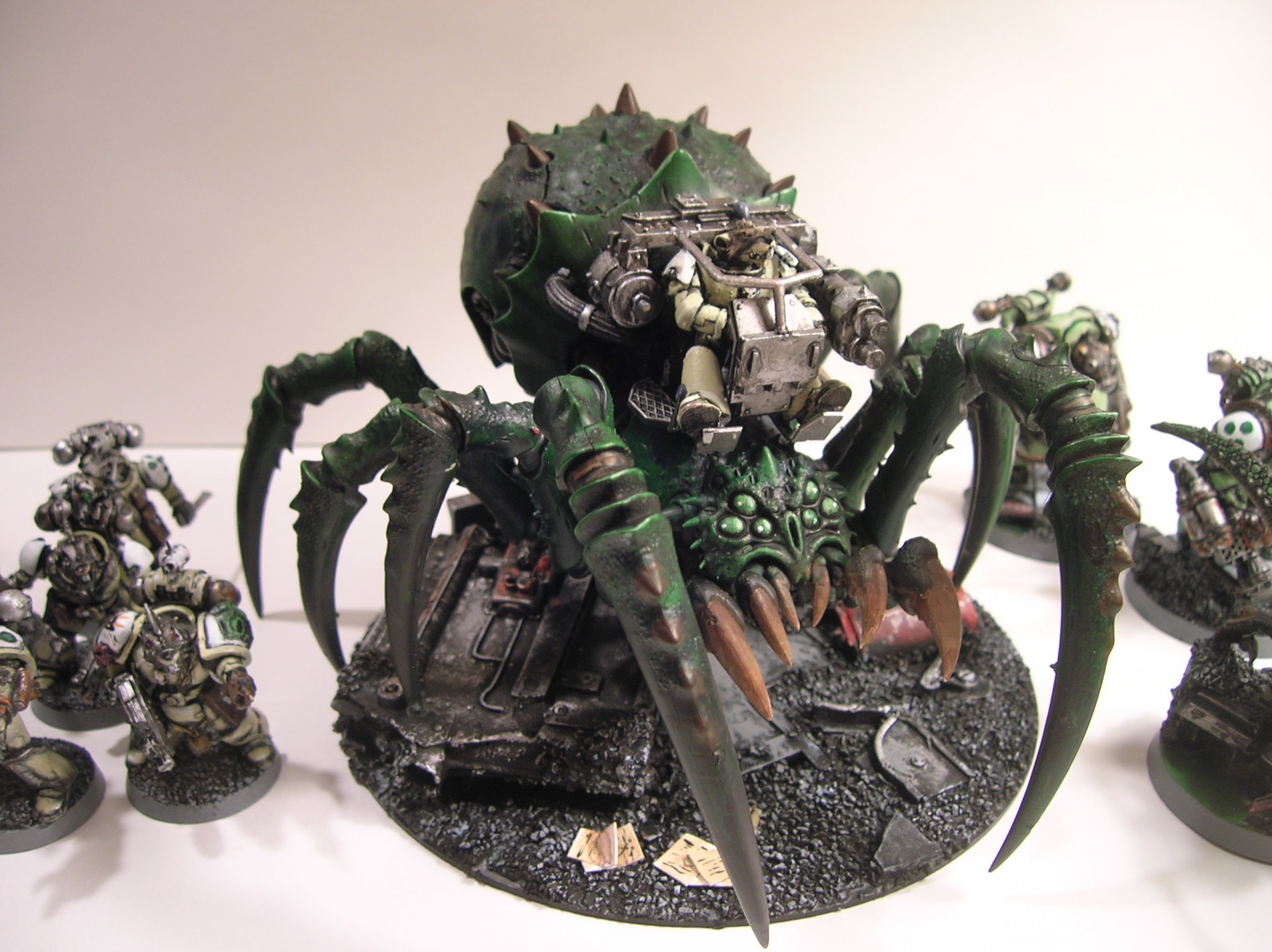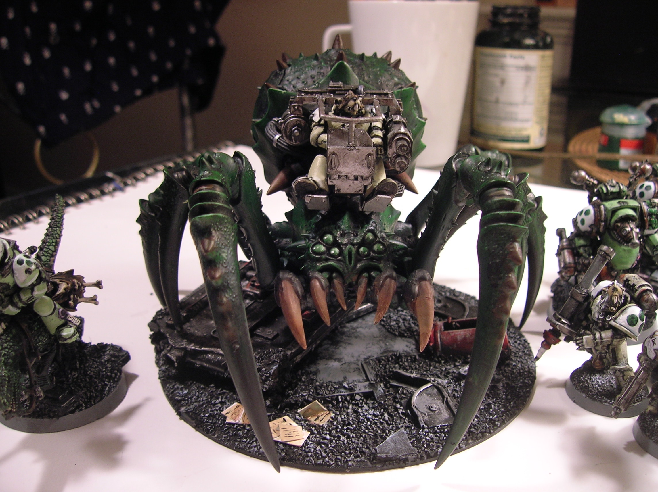 @yggs. Yeah I've been struggling with how to make the spider a little more "tech/futuristic" to fit into 40k. I think im going to put some guitar wire from the saddle to behind the spiders head to look like wiring going to its brain. Its going to have a mark of nurgle so I think the vomit cannon can just be assumed to come from its mouth. The ork big shoota (or what ever the hell that bit is ) will make a good "scavenged" autocannon, and Im going to trade a flamer for another dccw. I figure since this thing has fleet and Front AV 13 using it primarily for close combat makes the most sense. Anyway I could use some suggestions if you got any.