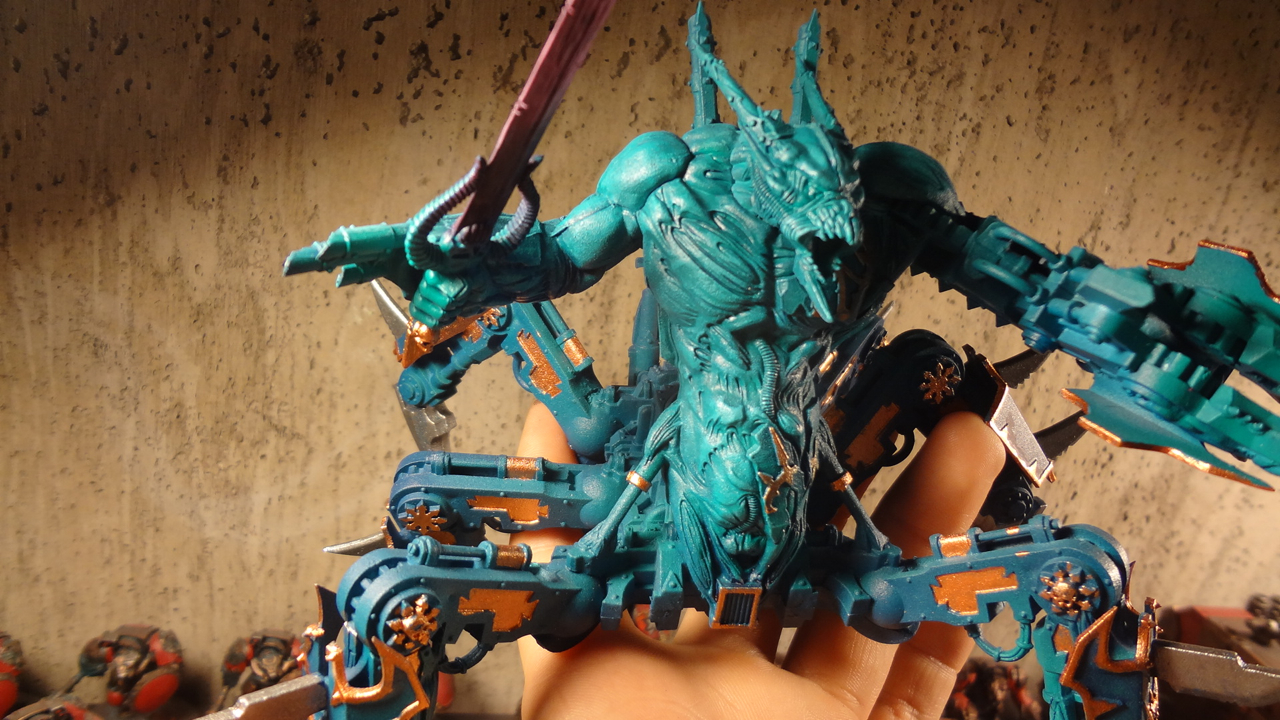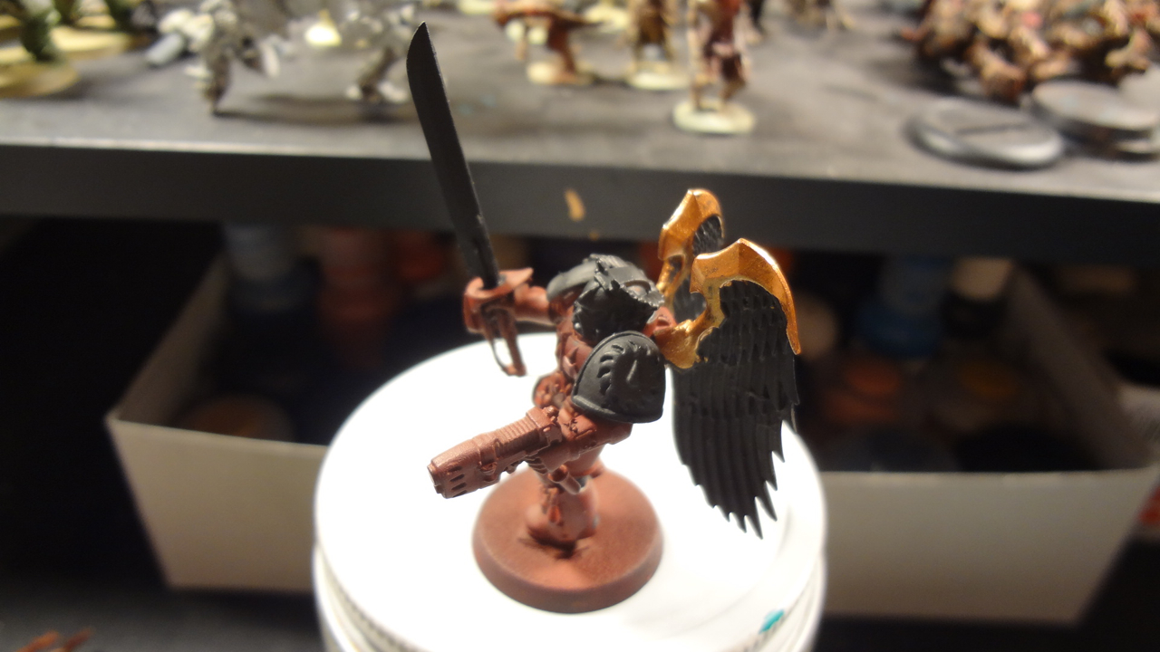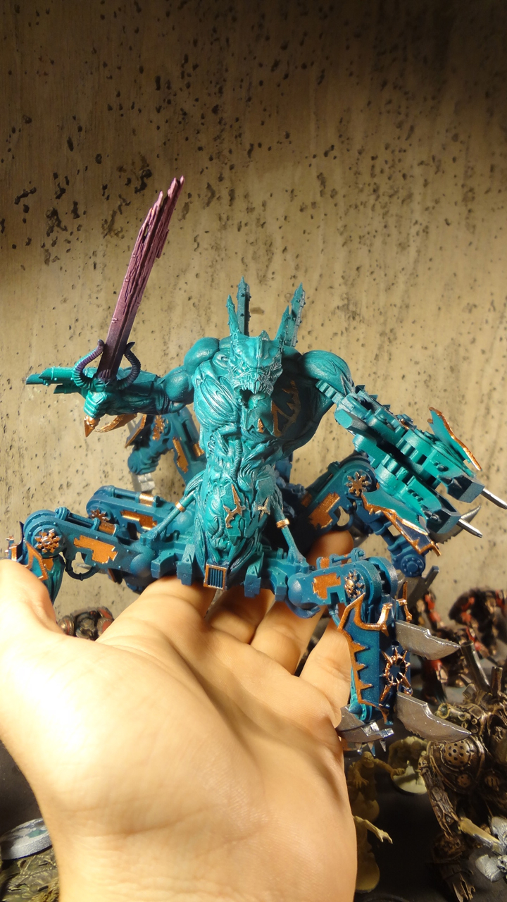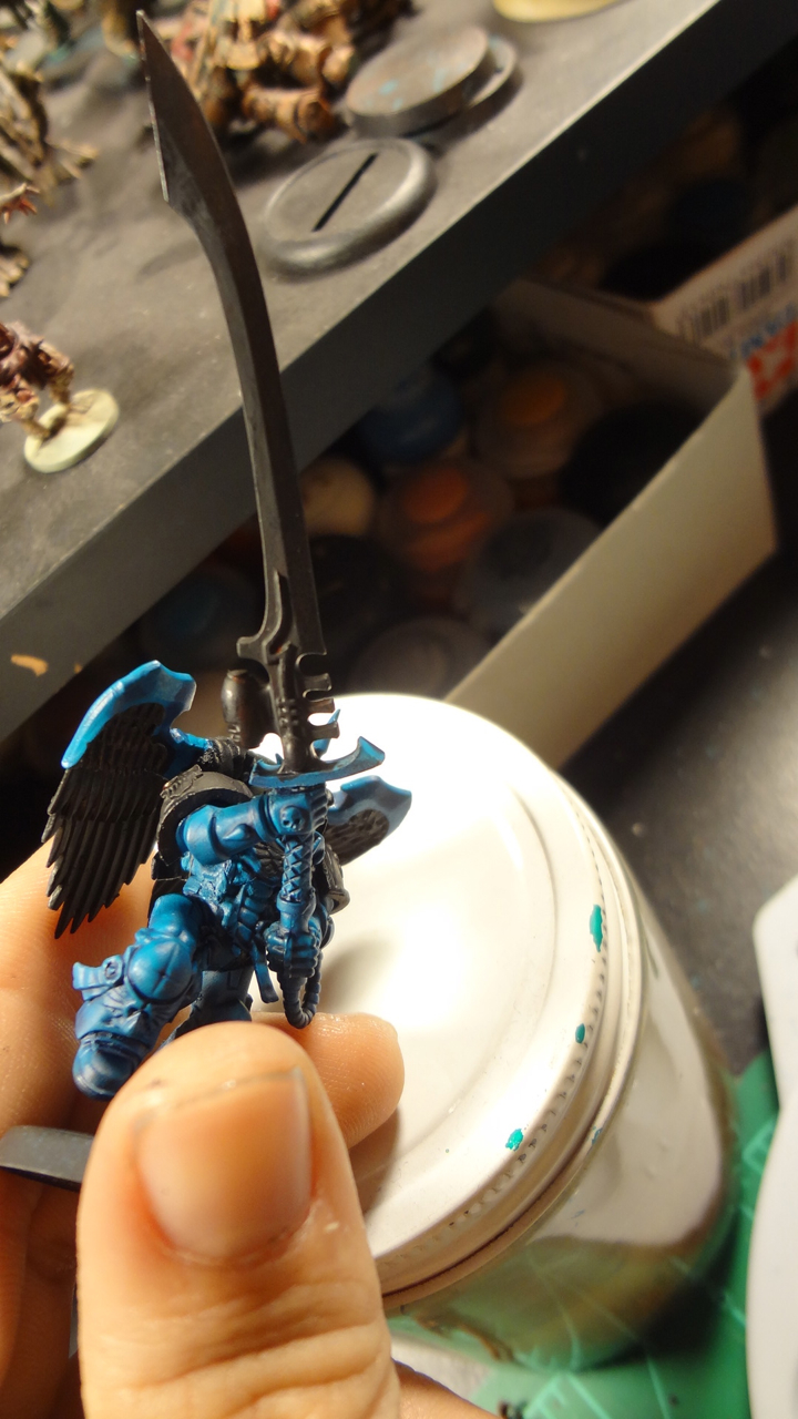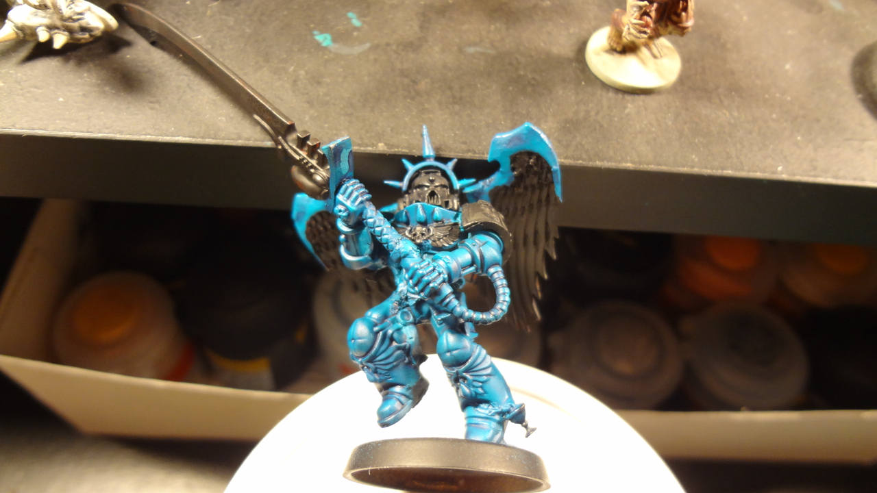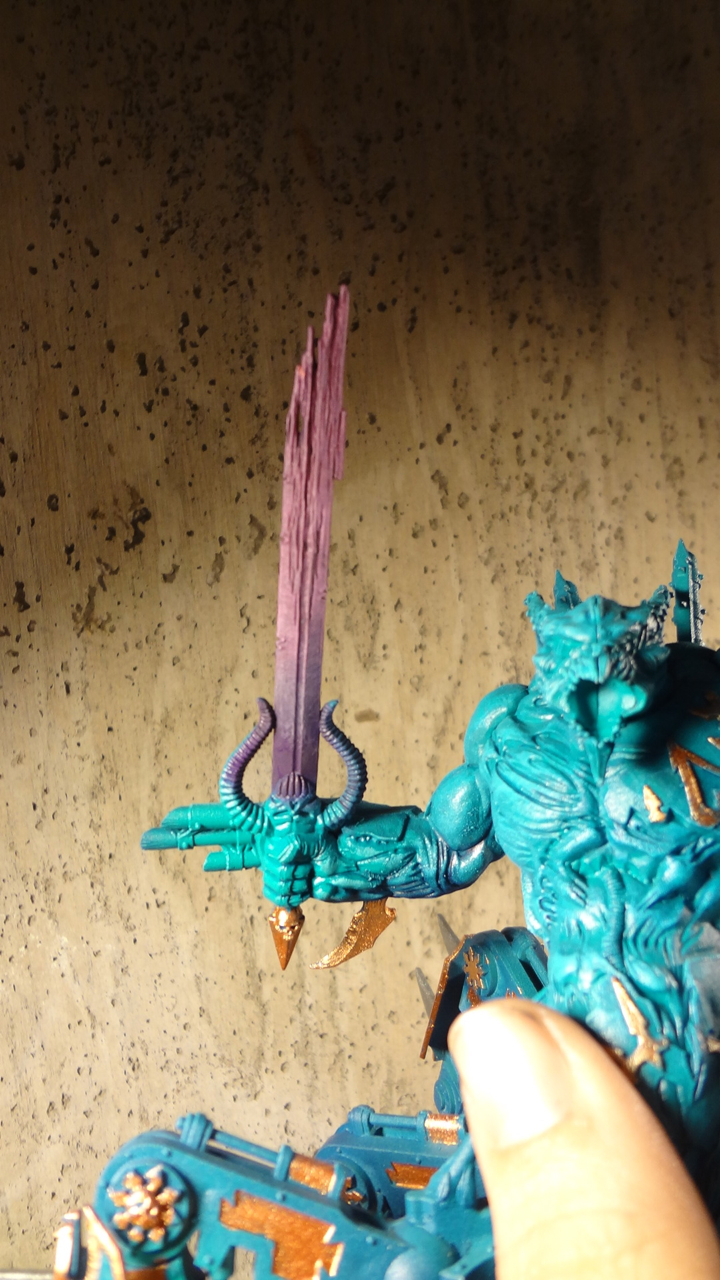 "Brother-Captain Aloycius Sanchez slew the Wraithlord with an ancient relic blade of the Flesh-Tearers chapter, but the wraithbone armor of the beast charred and cracked the blade; rendering it useless... With no other choice, he picked up the closest weapon that he could find... The Wraithlord's own sword... Now, he would mete out Imperial Justice upon the Eldar, using there own techonologies!!! Mu-hu-ha!!!"