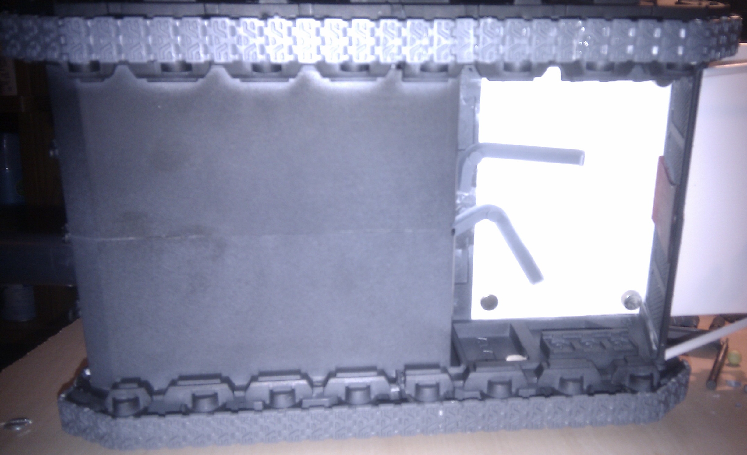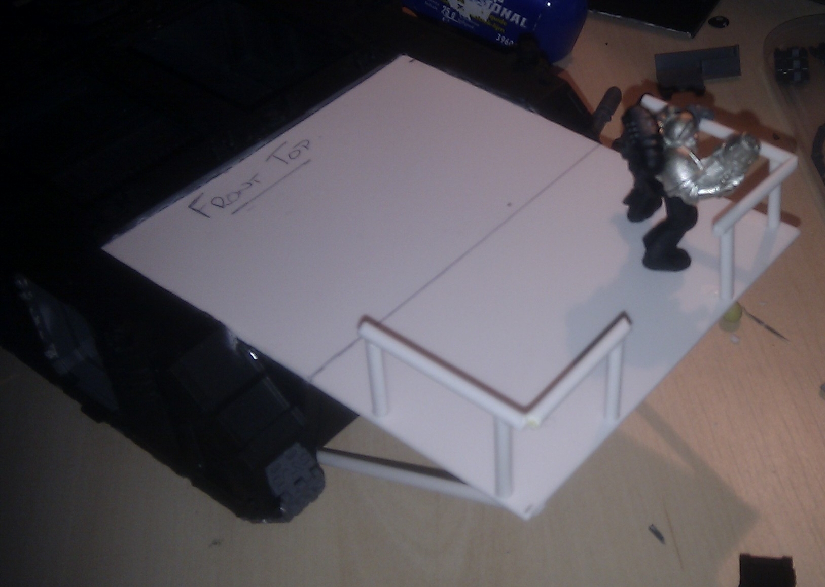 Quick update while I am at work. My mobile network has cut my internet off for using too much, so I won't be able to post pics for a while. I now have 4 twin linked las cannon sponsons. Knocked together a hatch to reload big cannon with and started work on the tracks.